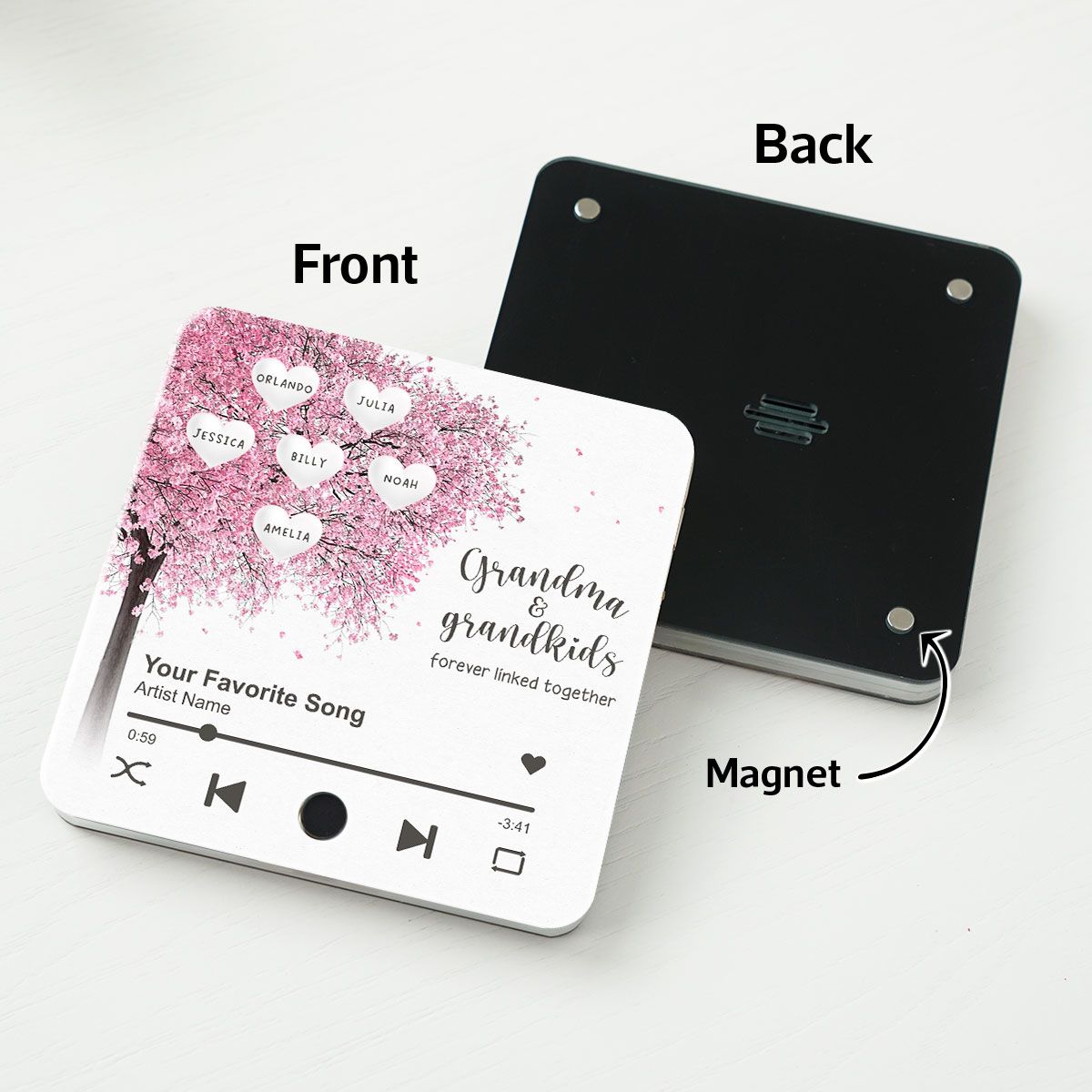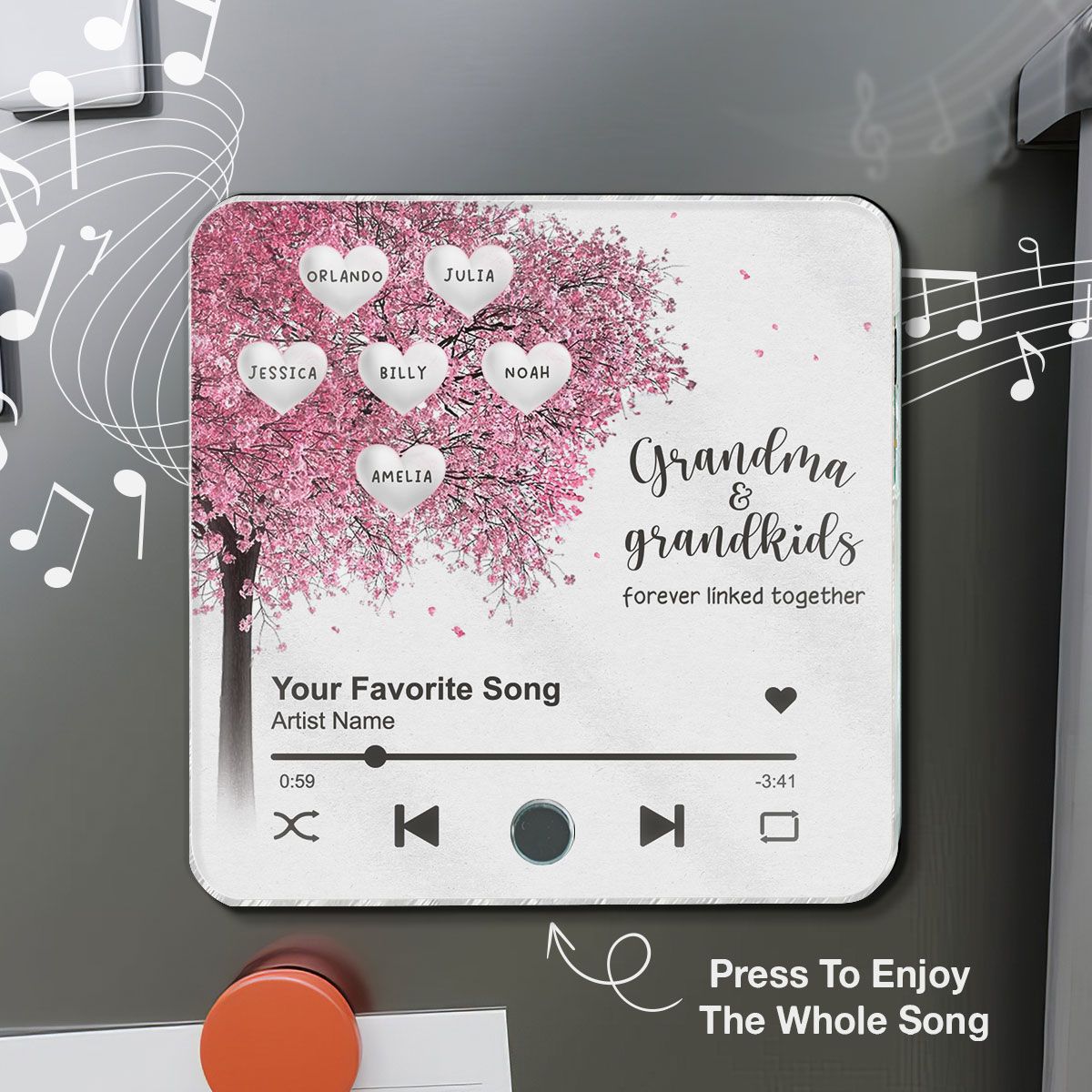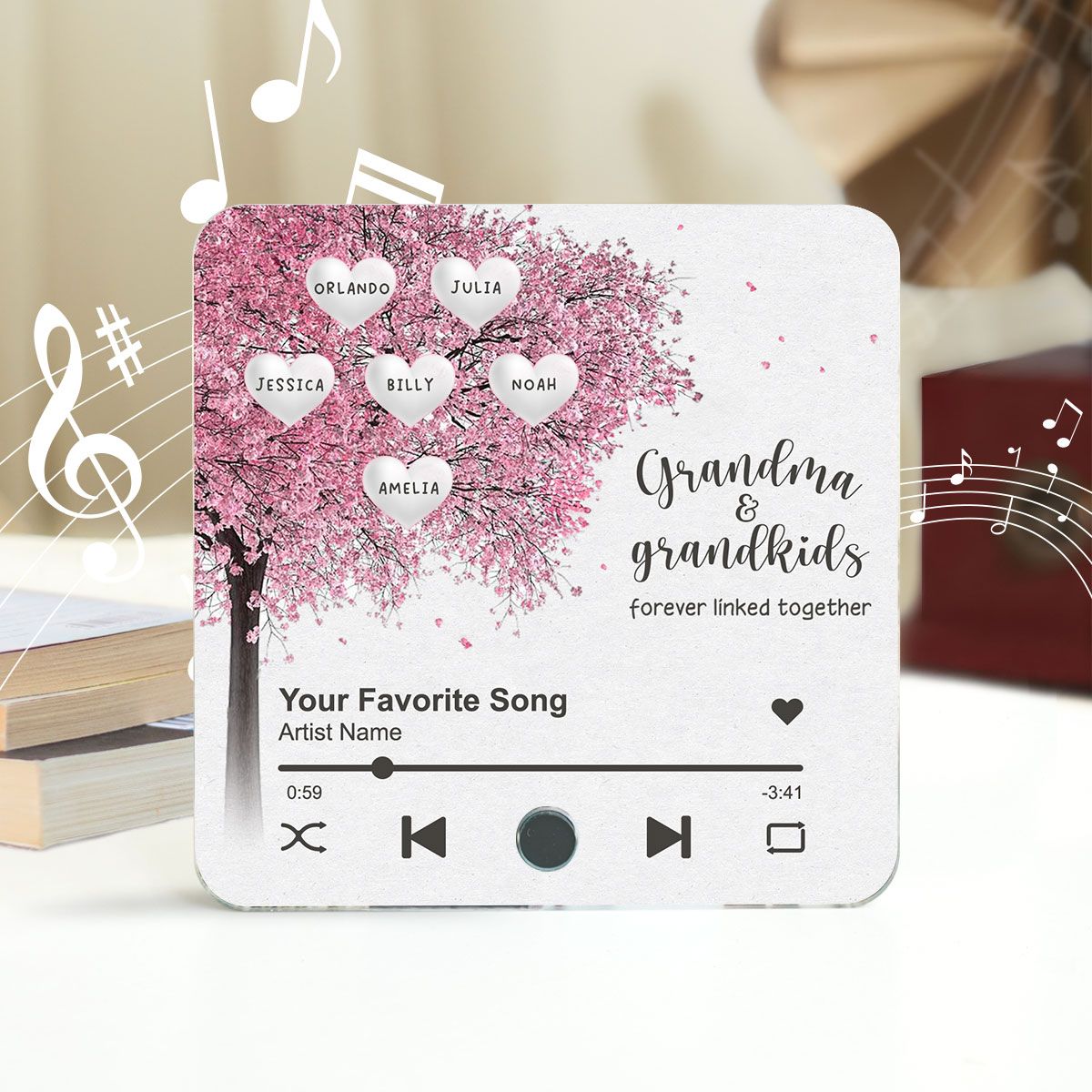 Grandma Grandkids Fill A Place In Your Heart Heart Tree Personalized Music Fridge Magnet, Heartfelt Mother's Day Gift For Mom For Grandma
