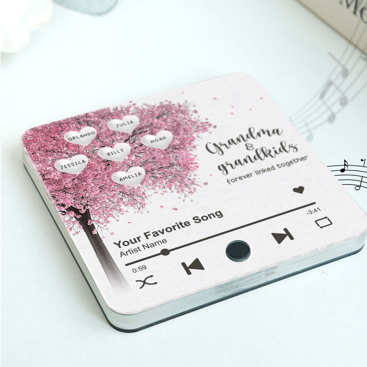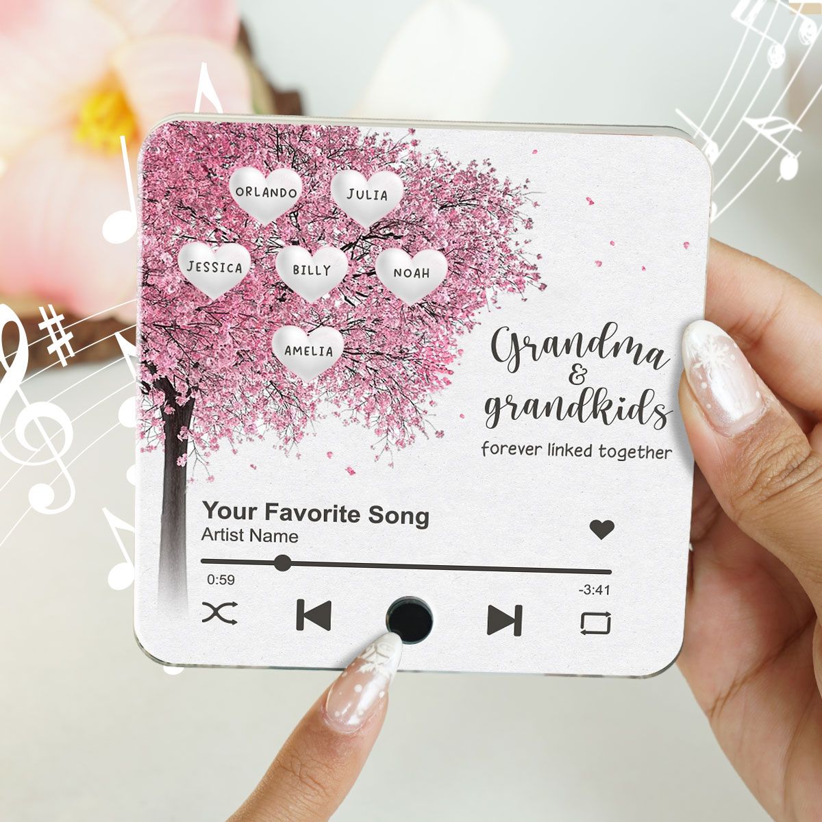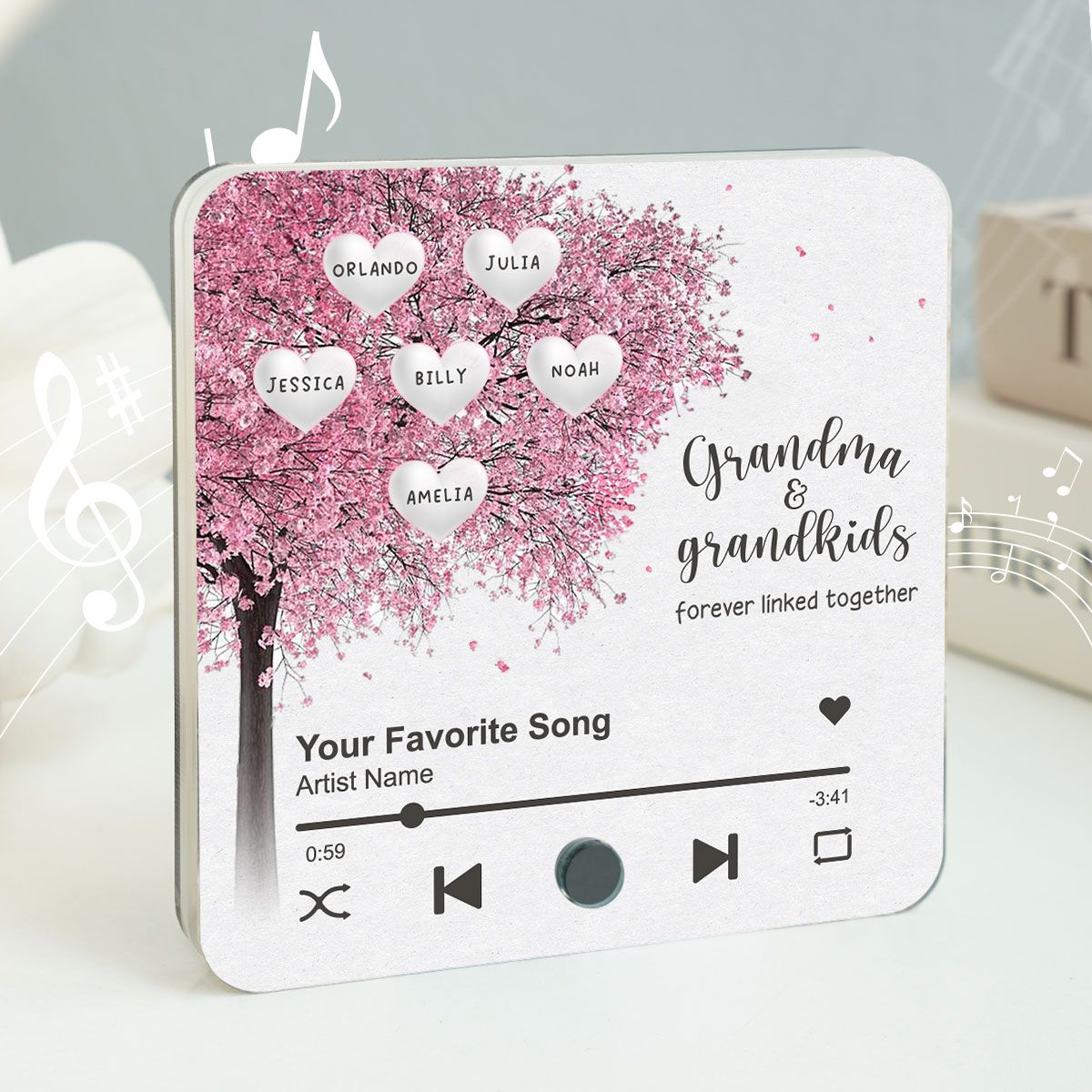 Grandma Grandkids Fill A Place In Your Heart Heart Tree Personalized Music Fridge Magnet, Heartfelt Mother's Day Gift For Mom For Grandma