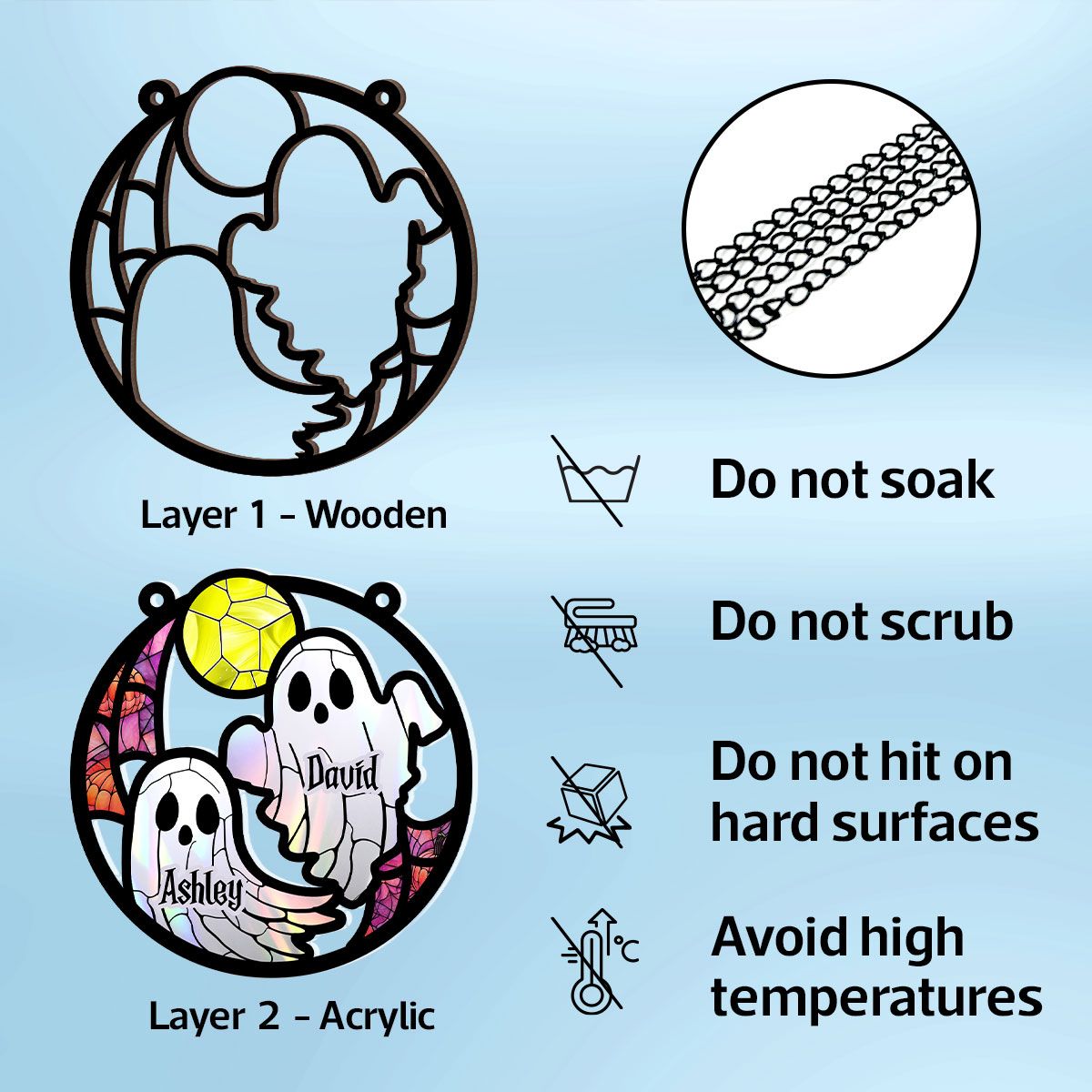 Grandma Mom Family Boo Crew Personalized Suncatcher, Halloween Decor