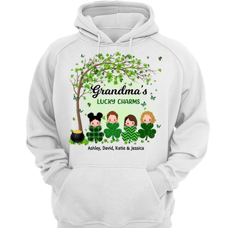 Grandma Mom Lucky Charm Peeking Kids Personalized Hoodie Sweatshirt