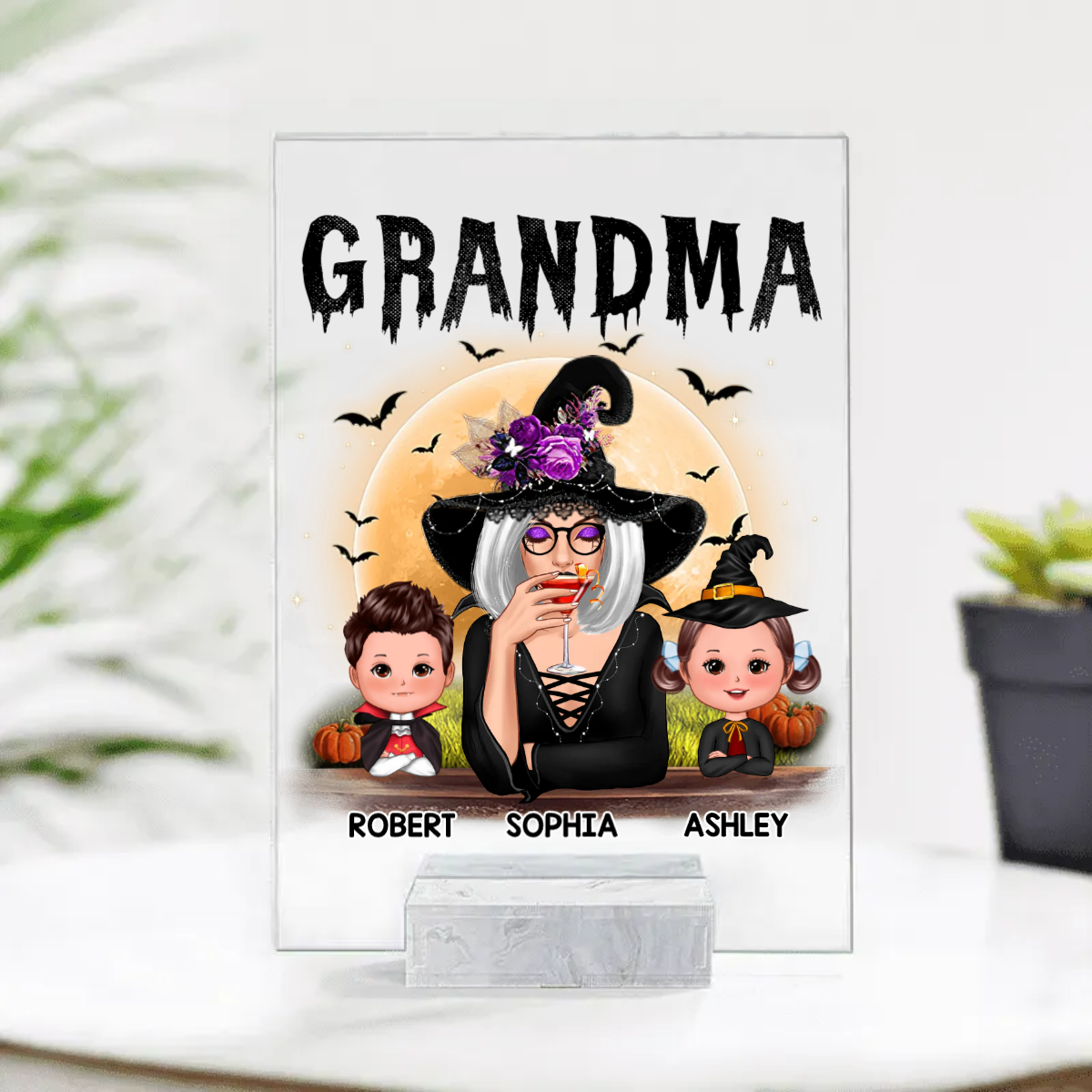 Grandma Mom Witch With GrandKids Halloween Personalized Custom Acrylic Plaque