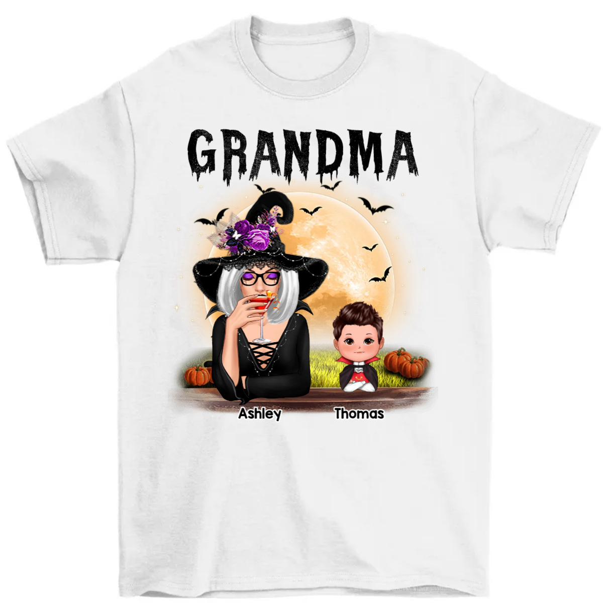Grandma Mom Witch With GrandKids Halloween Personalized Custom Shirt