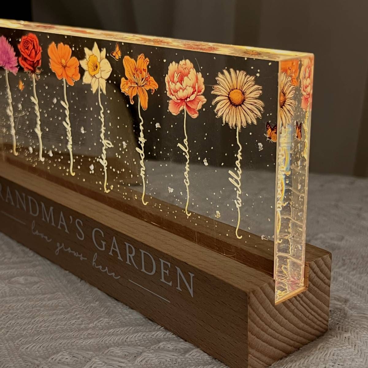 Grandma‘s Garden Birth Month Flower Personalized LED Night Light, Gift For Grandma Mom