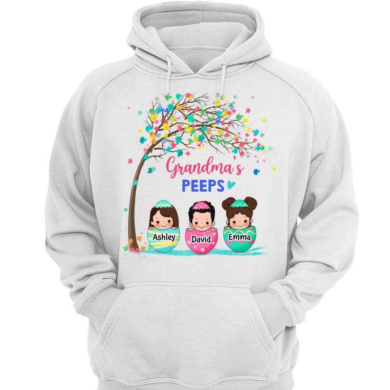 Grandma‘s Peeps Peeking Kids Under Tree Easter Gift Personalized Hoodie Sweatshirt