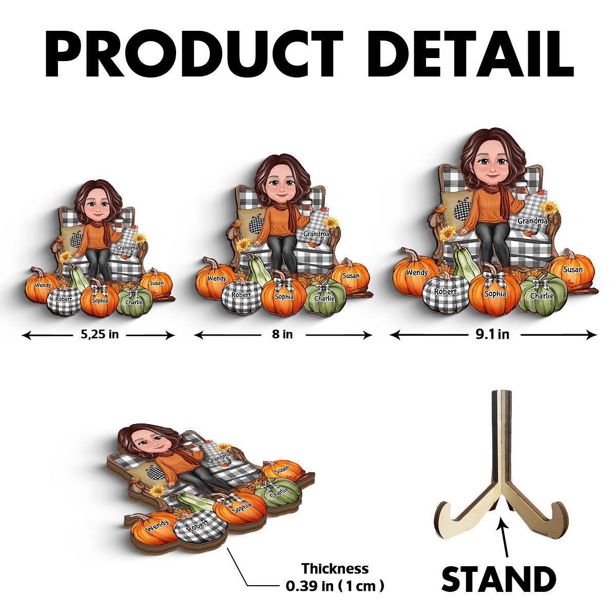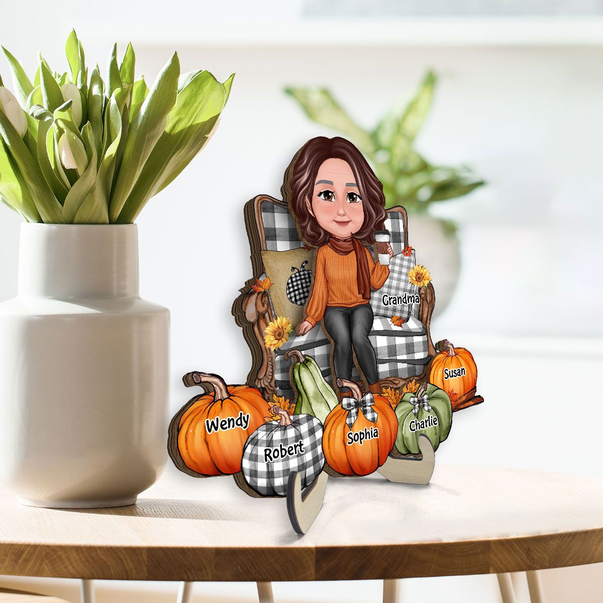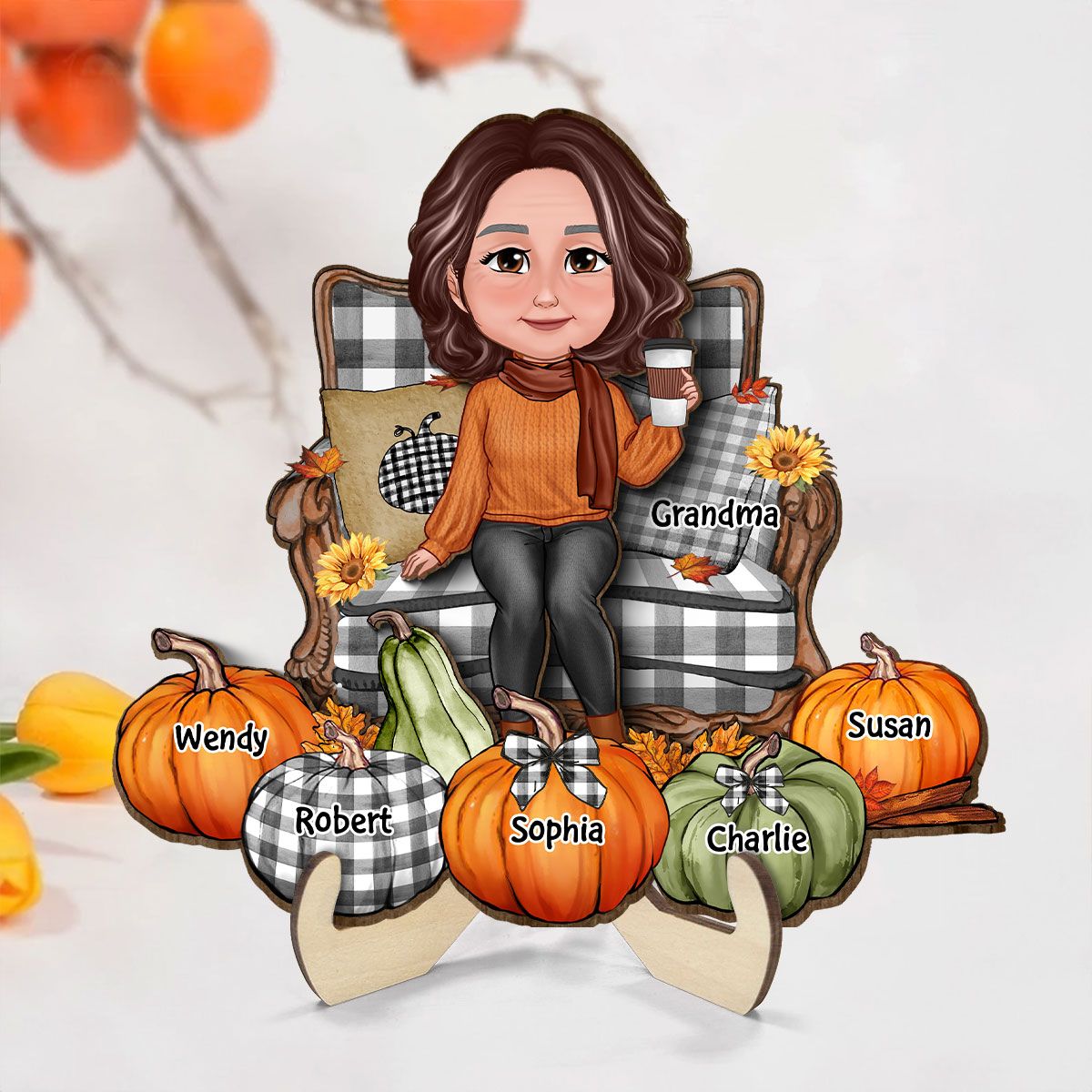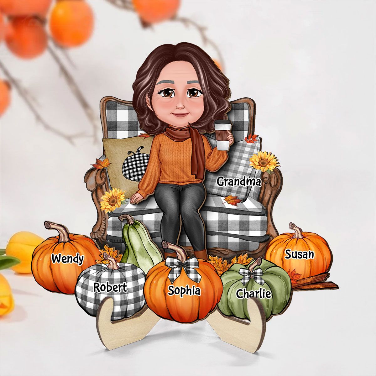 Grandma Sitting On Chair Pumpkins Personalized 2-Layer Wooden Plaque