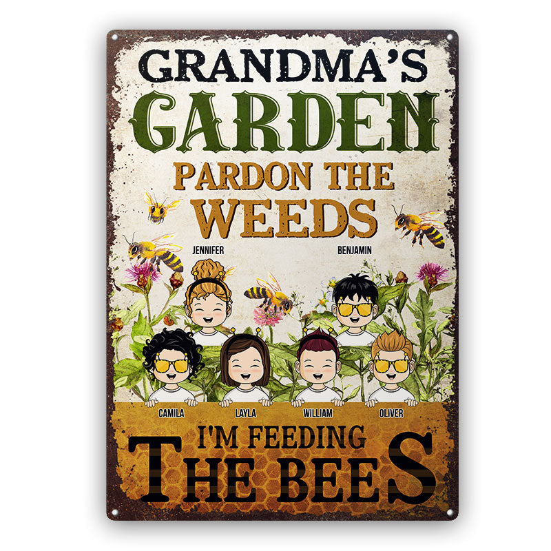 Grandma's Garden Feeding The Bees - Gift For Grandma, Mom, Auntie - Personalized Custom Classic Metal Signs