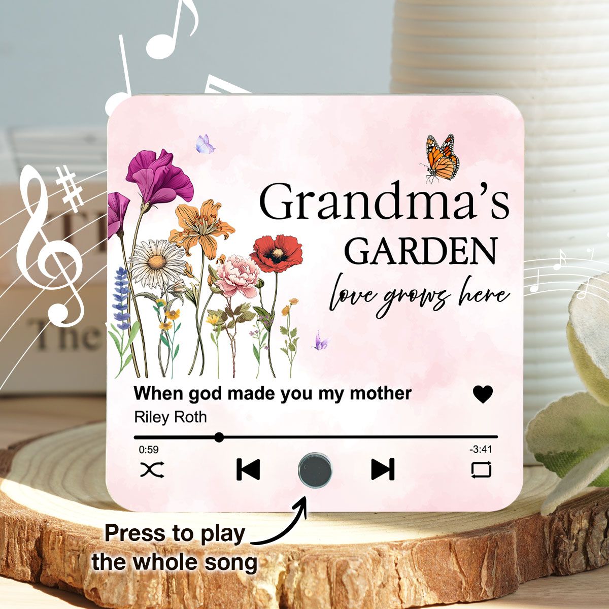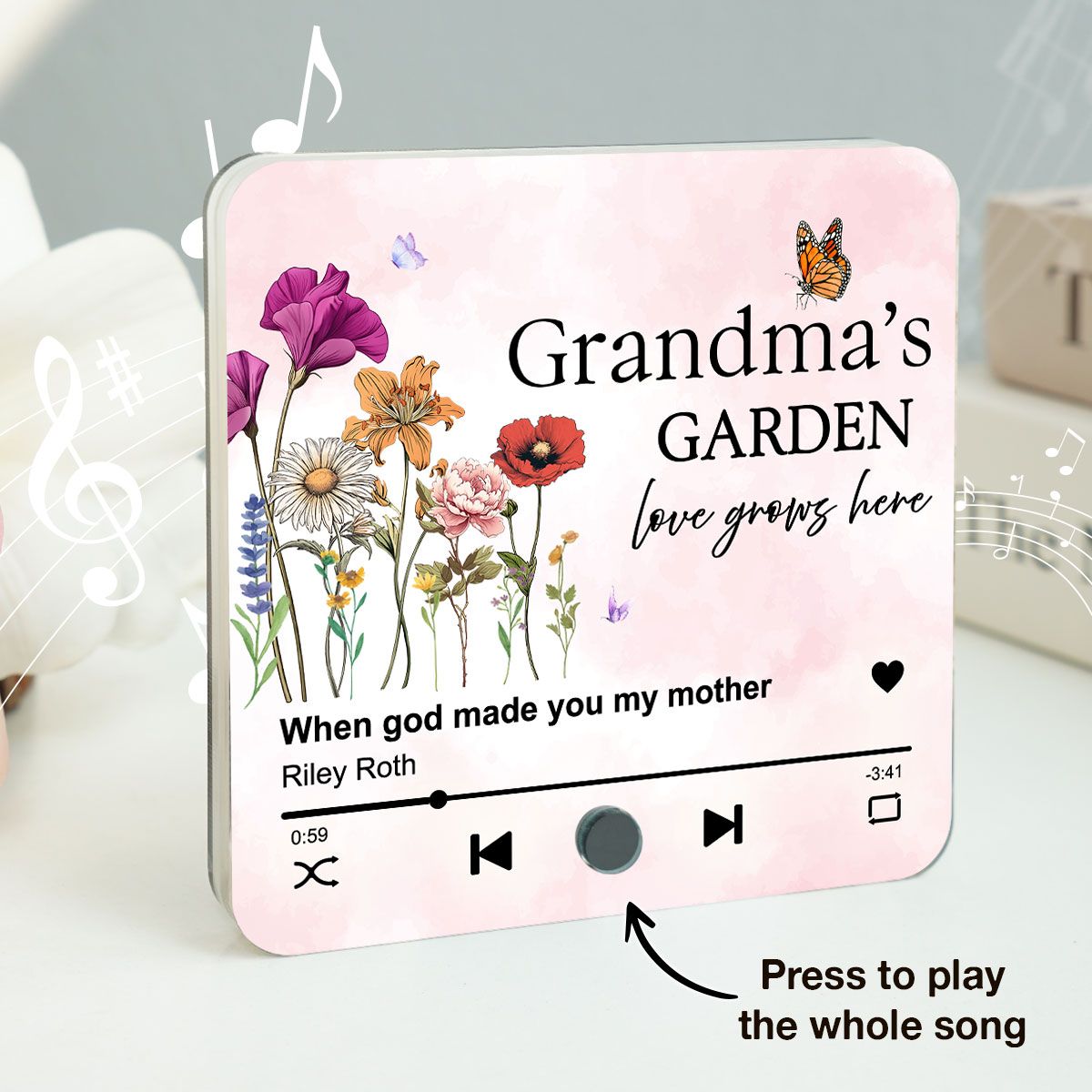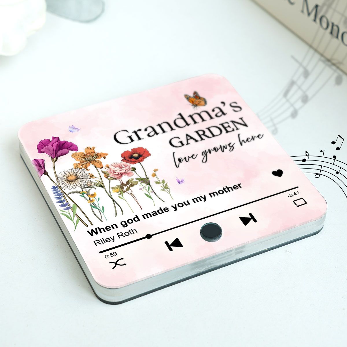 Grandma's Garden, Grandma's Kitchen Birth Month Flower Personalized Music Fridge Magnet, Gift for Grandma, Mom