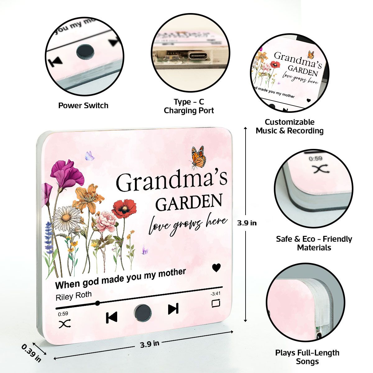 We love this sitting on our refrigerator and every time I go past it I hit the button to hear our favorite song from over 50 years ago. It looks great - the writing was perfect and our song is very clear. I recommend! Would buy it again!