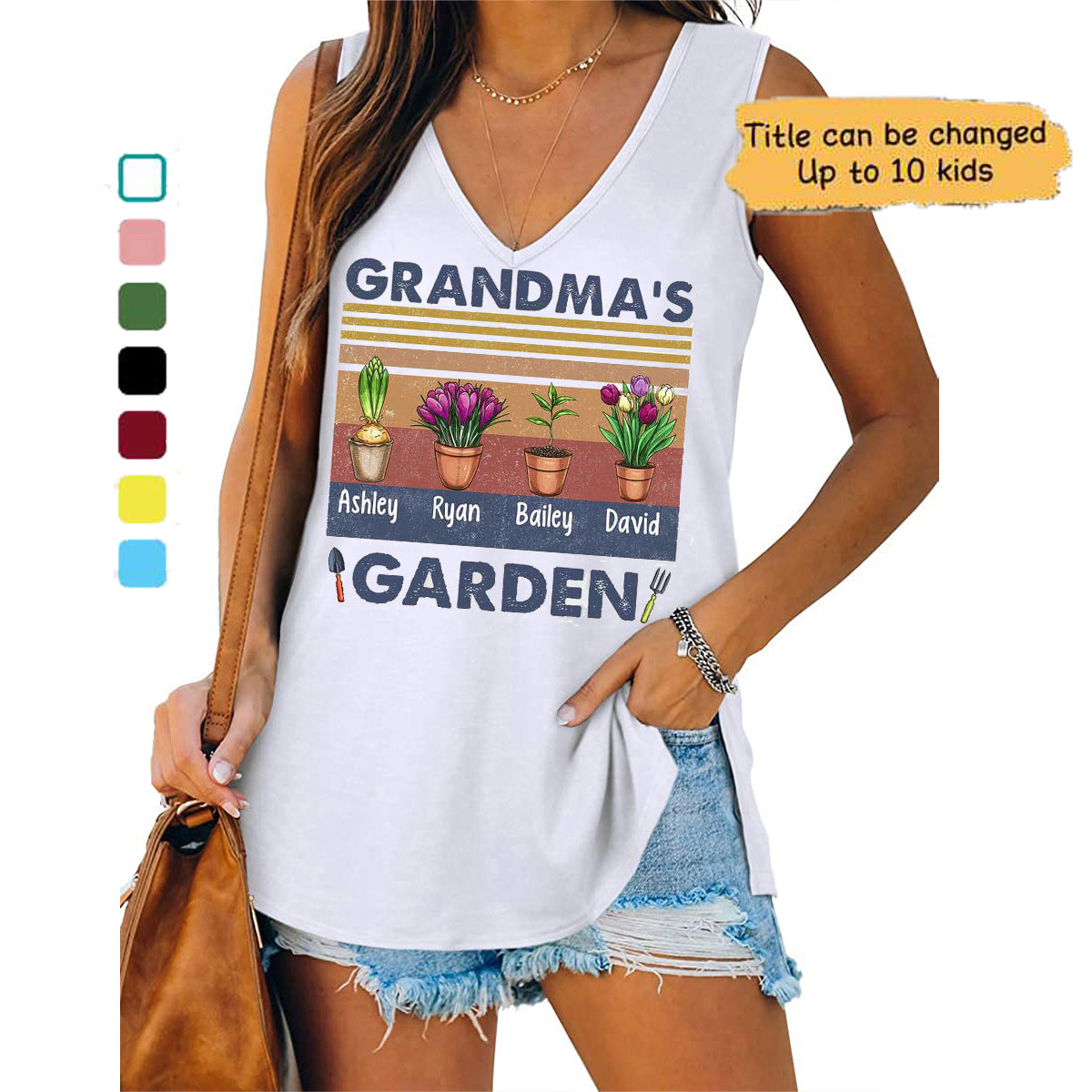 Grandma's Garden Retro Personalized Women Tank Top V Neck Casual Flowy Sleeveless