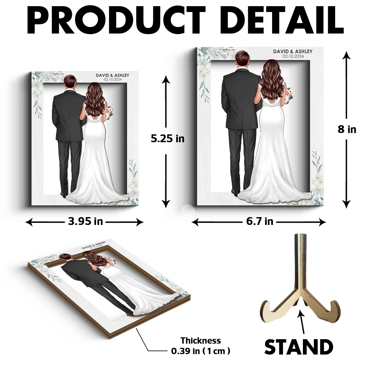 Groom Bride Back View Frame Wedding Gift Personalized 2-Layer Wooden Plaque, Anniversary Gift, Valentines Day Gift For Couples, For Him, For Her