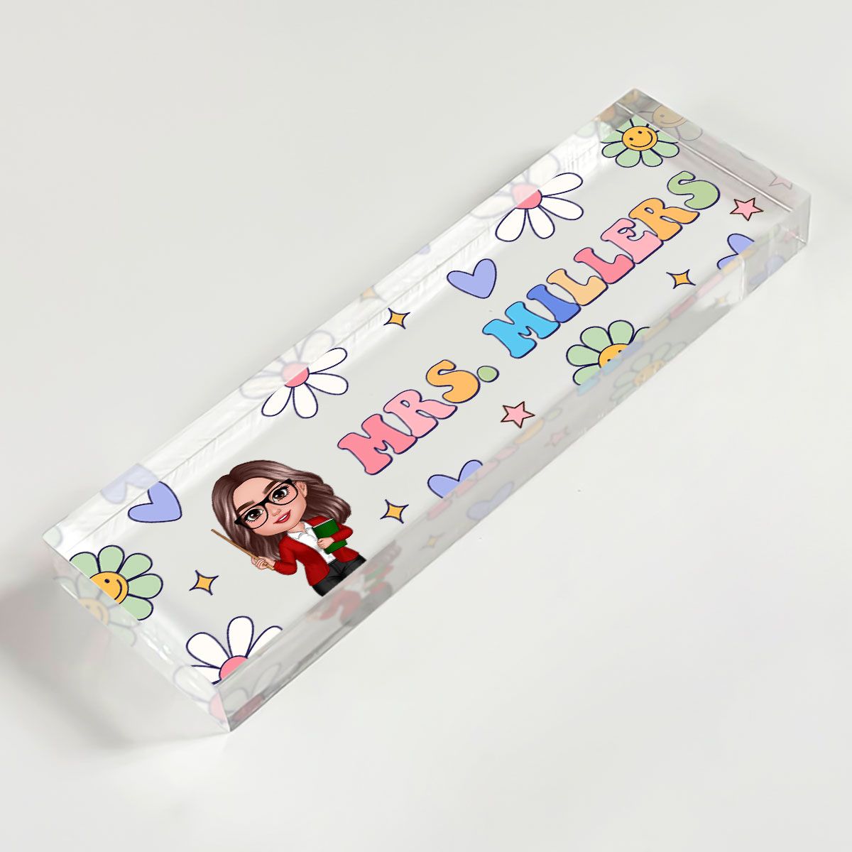 Groovy Retro Teacher Name Sign, Back To School Teacher Gifts Personalized Teacher Acrylic Desk Name Plate