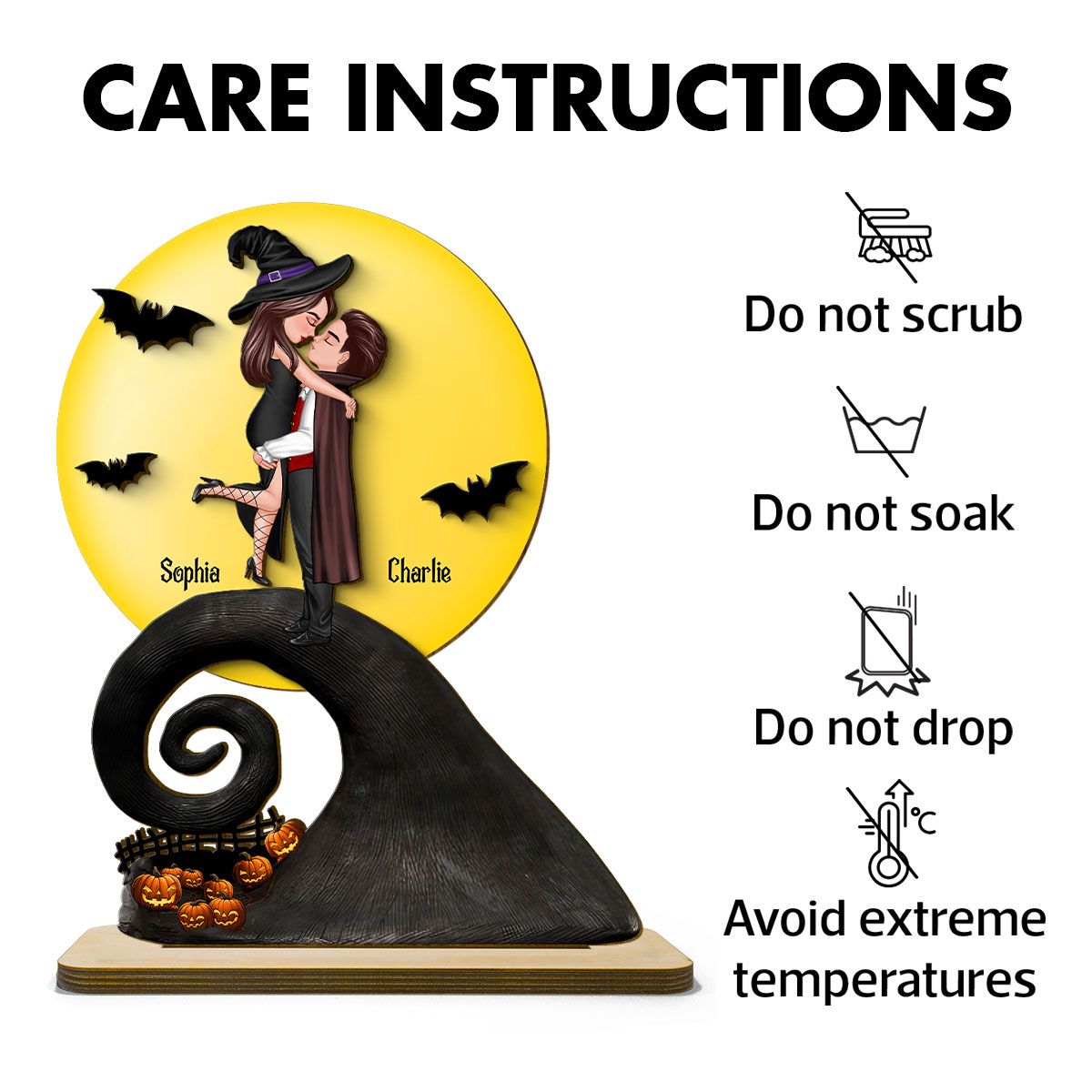 Halloween Couple Hugging Kissing On Cliff Personalized 2-Layer Standing Wooden Plaque, Gift for Her, Gift for Couple