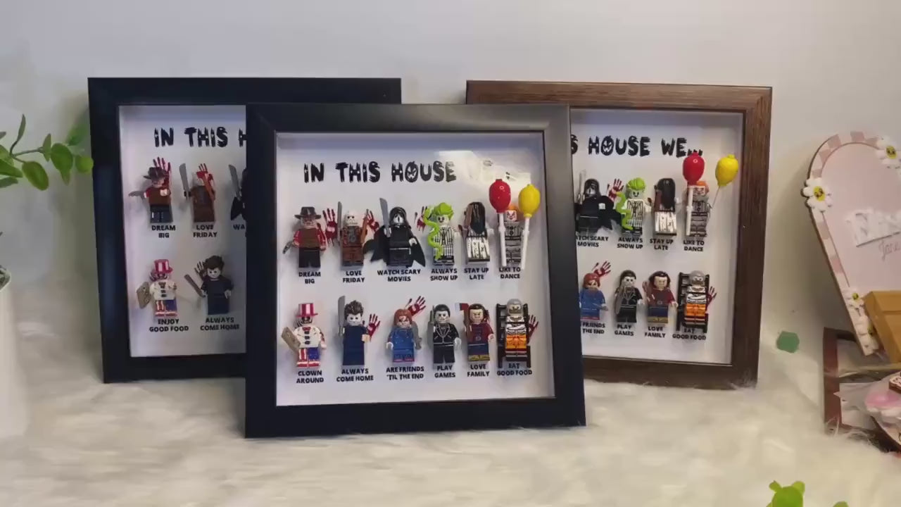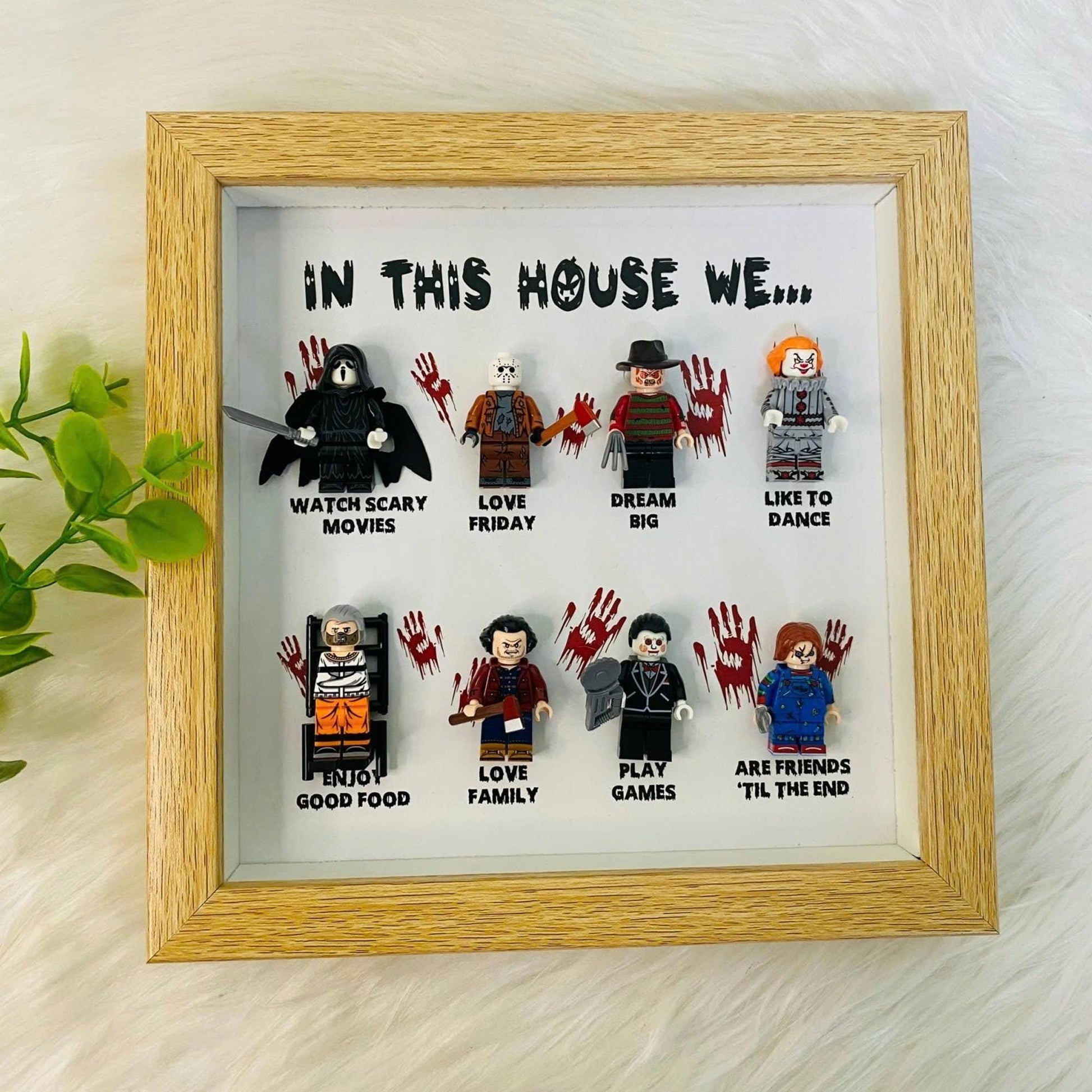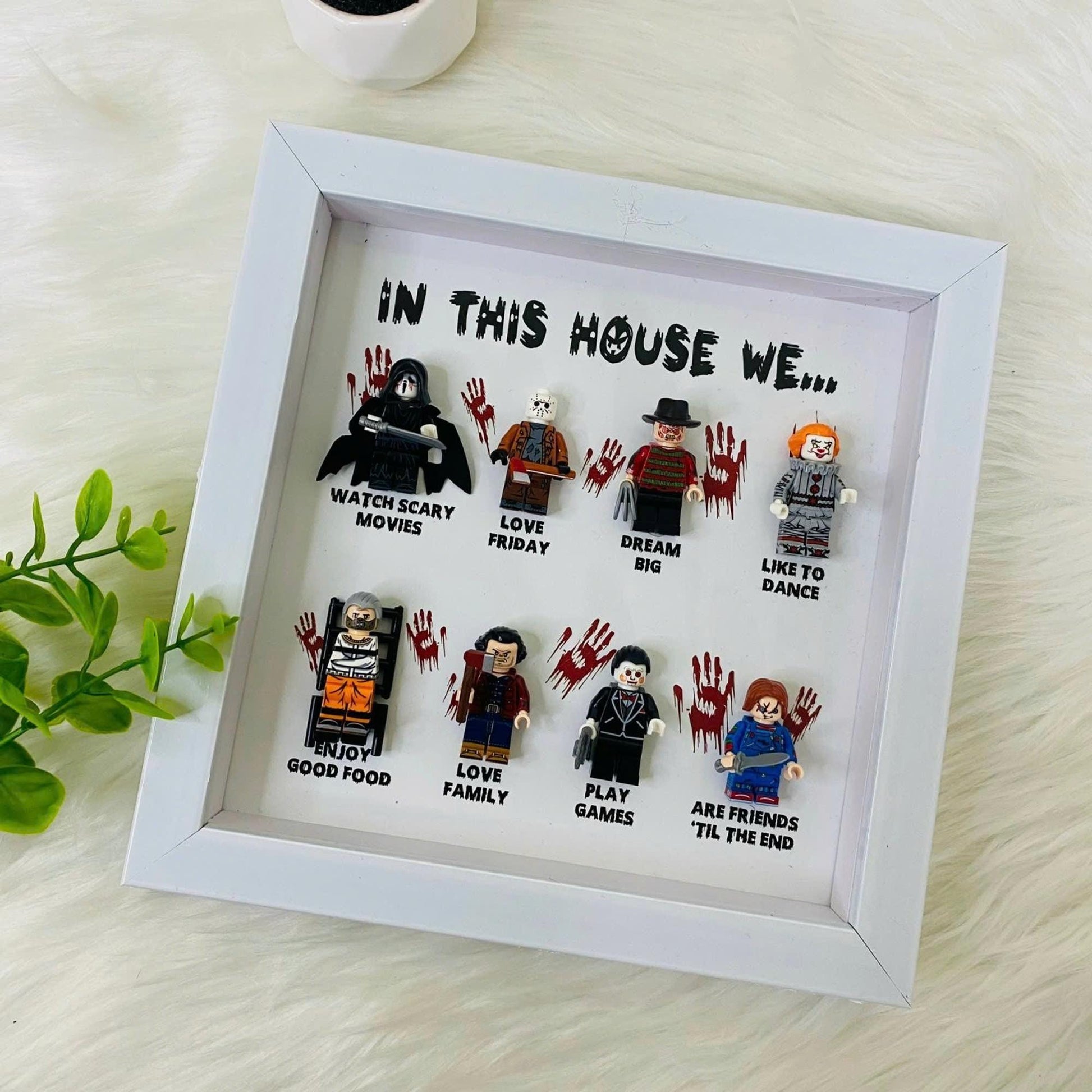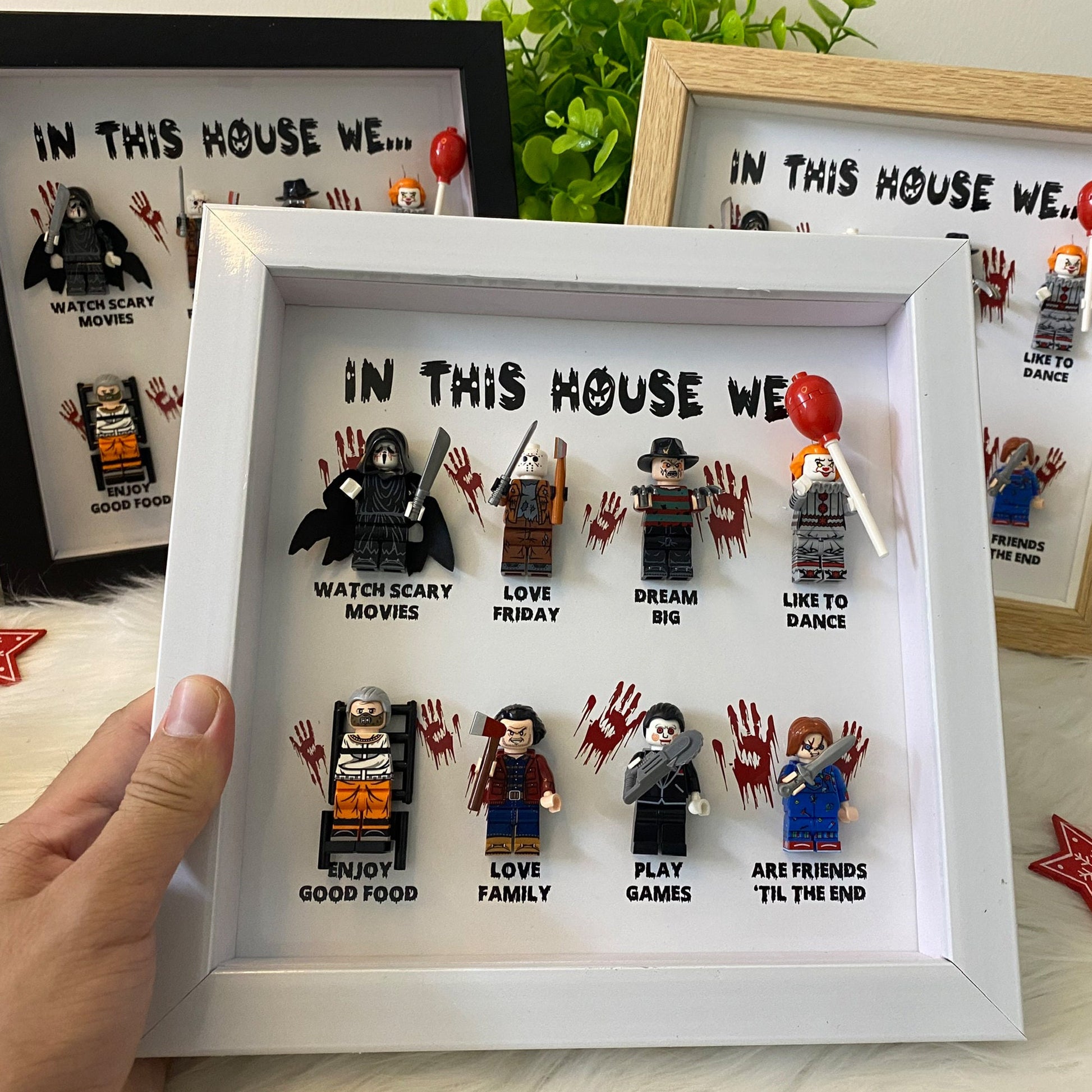 - A great picture frame for any horror movie loving family! Frames are shipped exactly as listed with the figures secured inside the frame and you do not have to assemble it yourself.