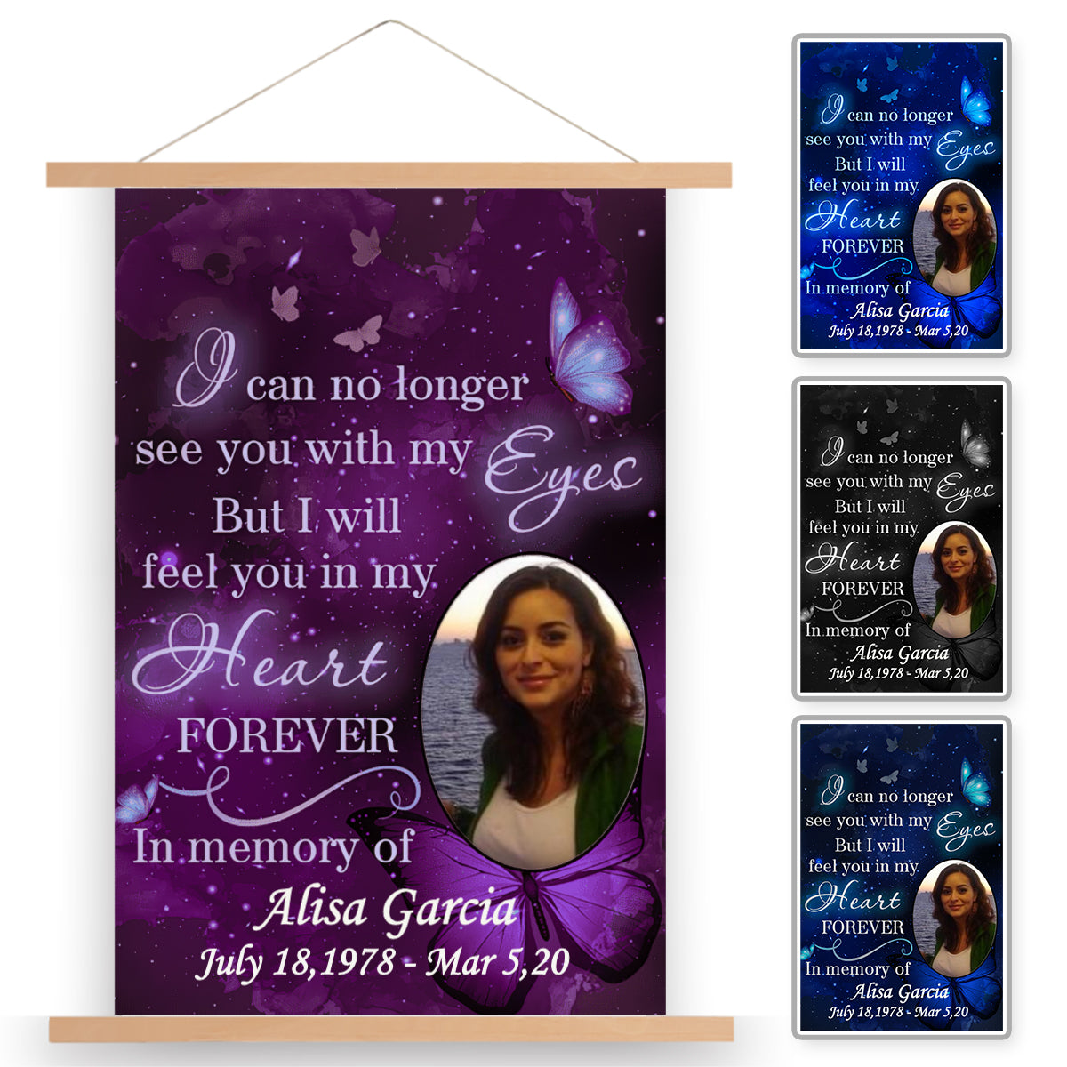 Feel You In My Heart Memorial Personalized Wall Scroll Painting With Wooden Poster Hanger