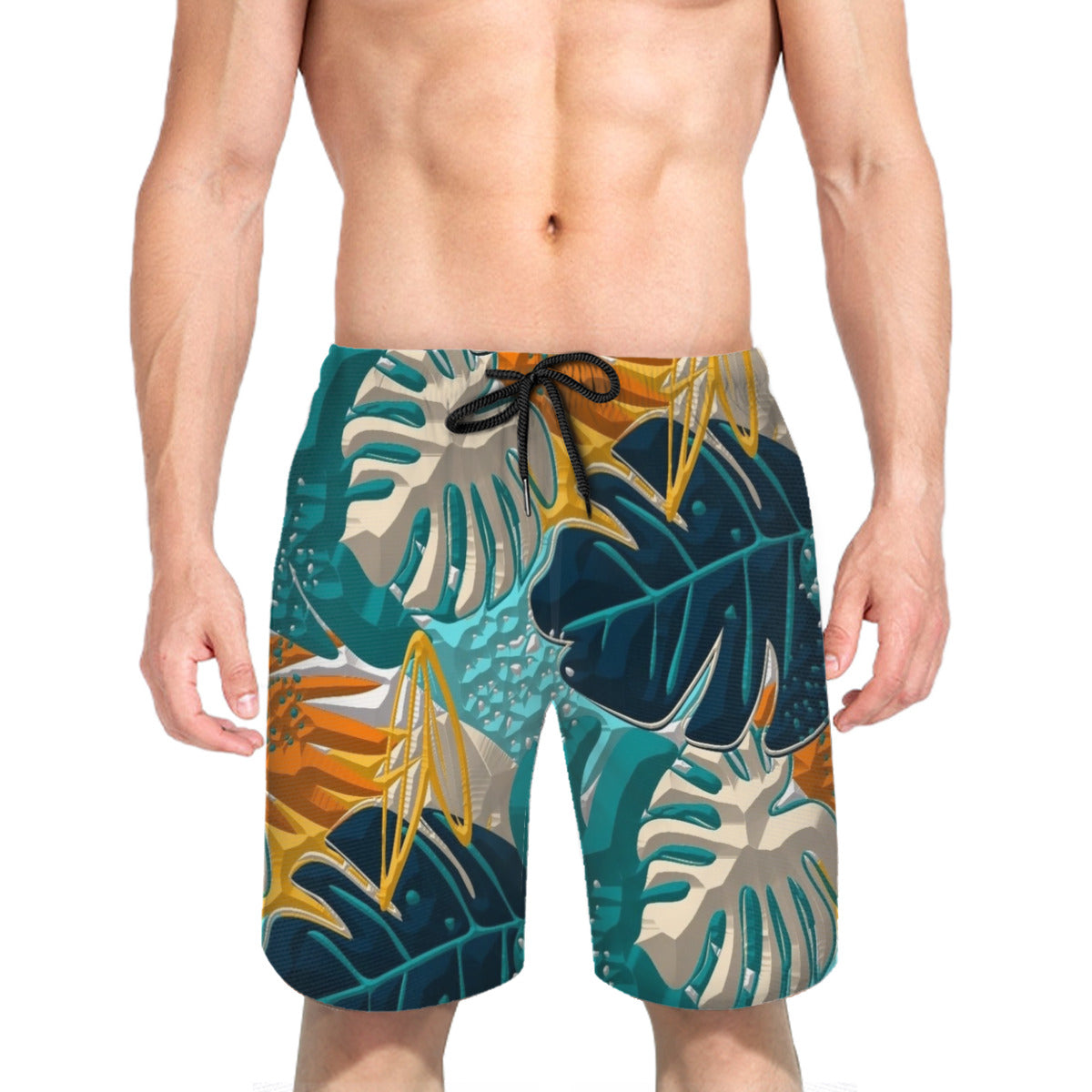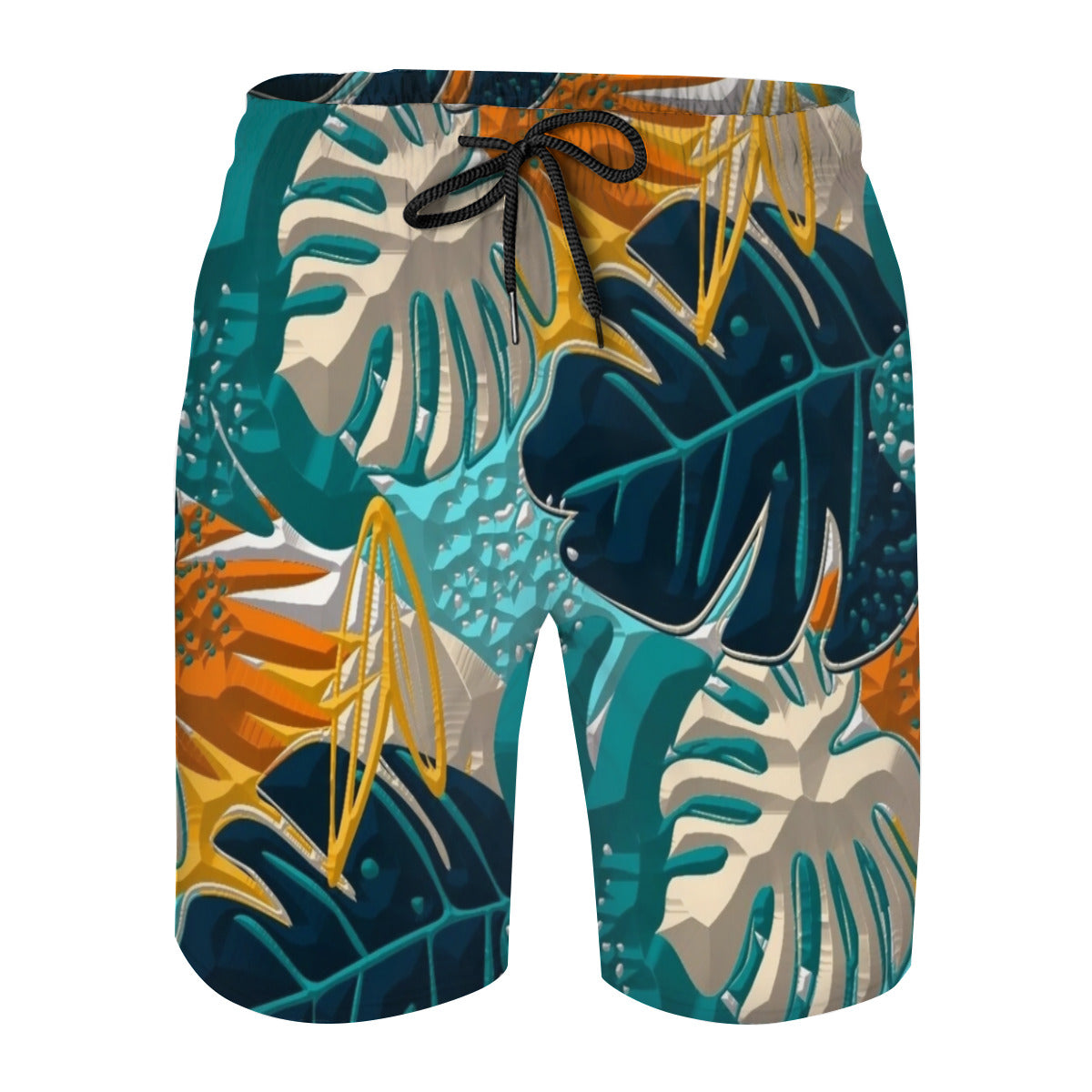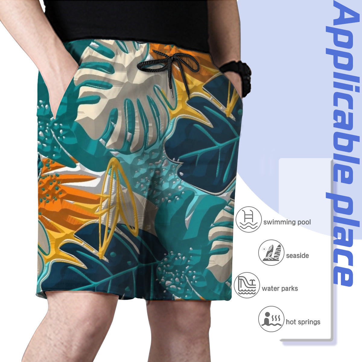 Material: 100% polyester, wearing comfortable and casual. Mesh lining featured. Relaxed-fit, suitable for daily wear or swimming.