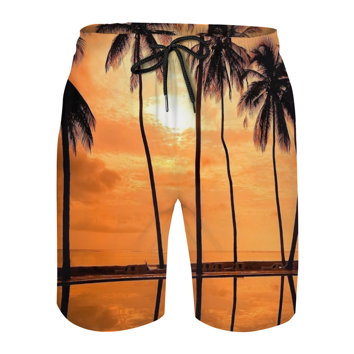 Material: 100% polyester, wearing comfortable and casual. Mesh lining featured. Relaxed-fit, suitable for daily wear or swimming.