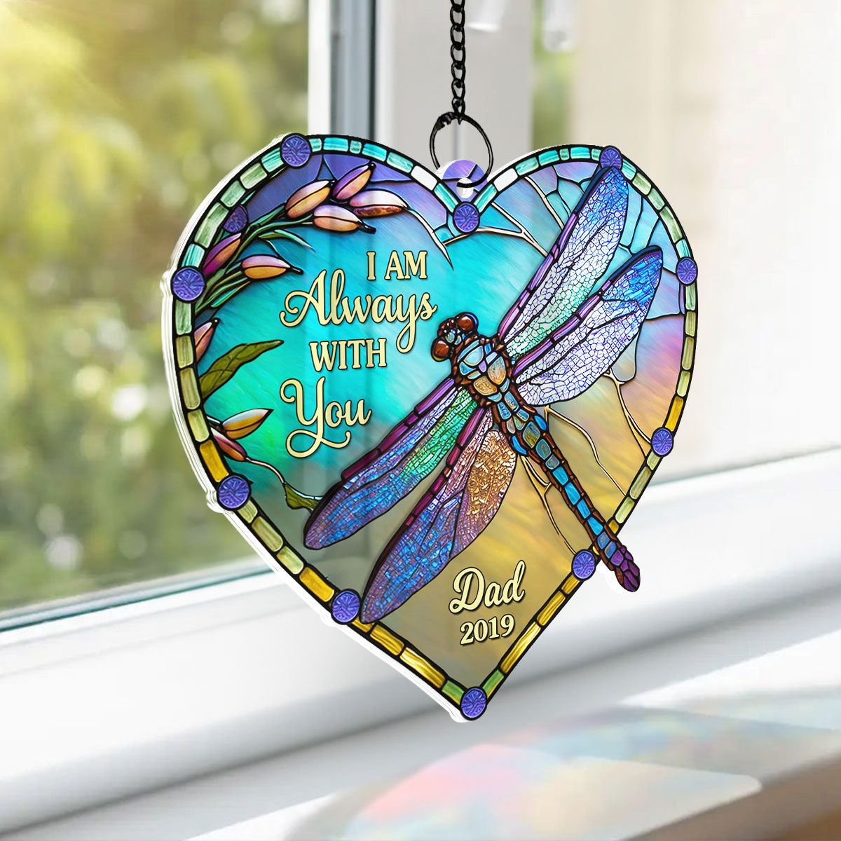 Heart Dragonfly Memorial Personalized Window Hanging Suncatcher Ornament, Sympathy Gift For Loved Ones