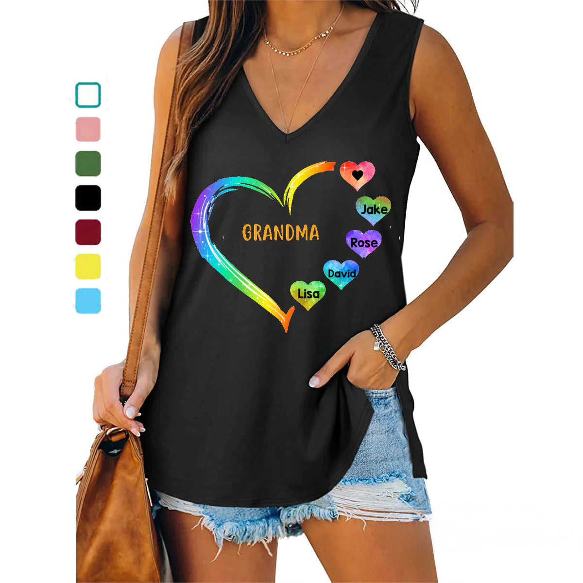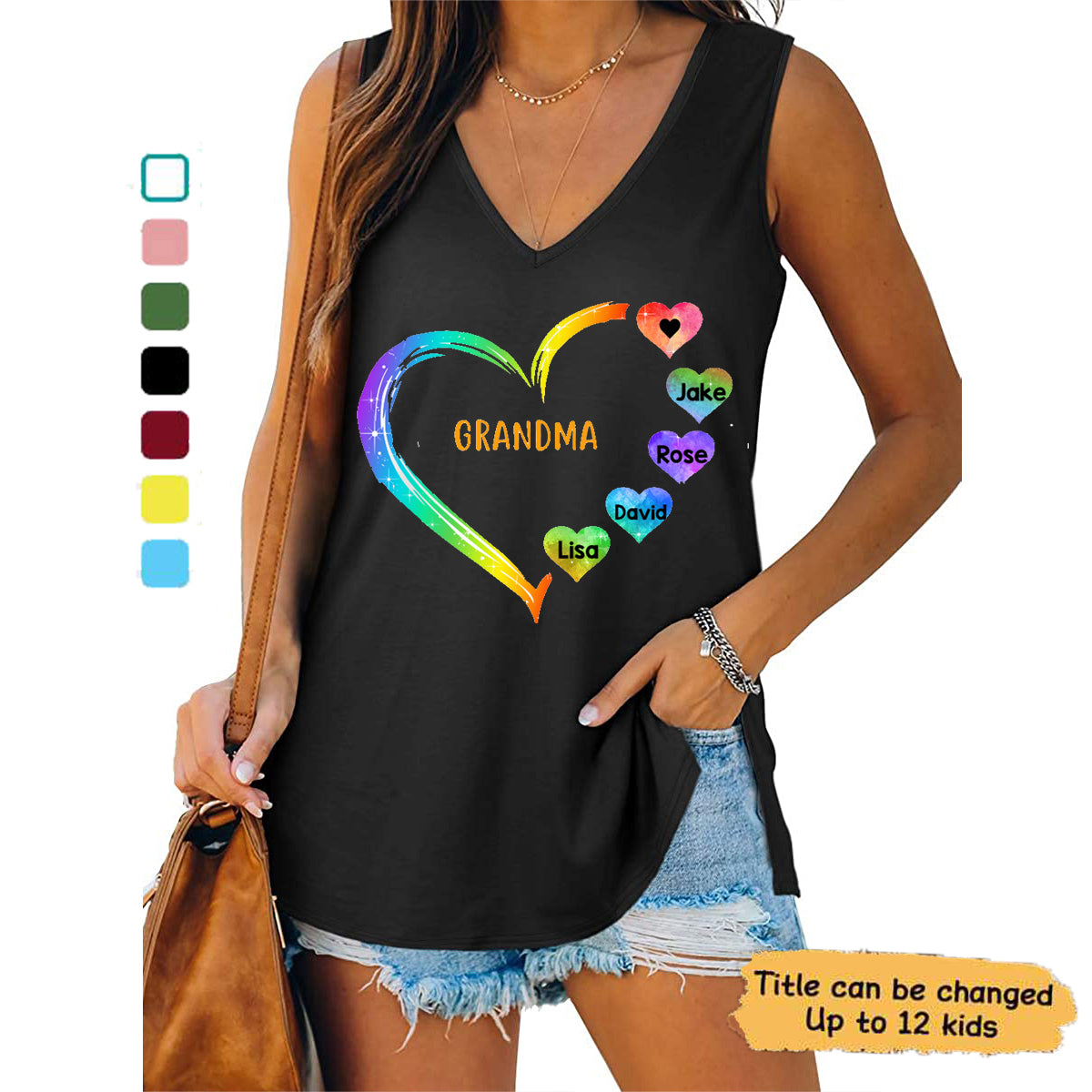 Heart Mom Grandma Personalized Women Tank Top V Neck Casual Flowy Sleeveless