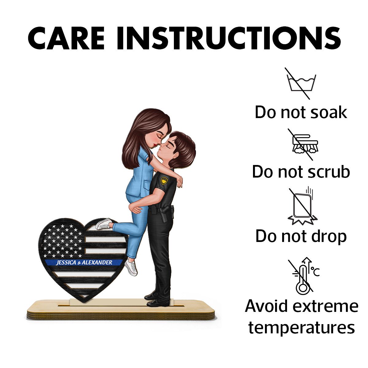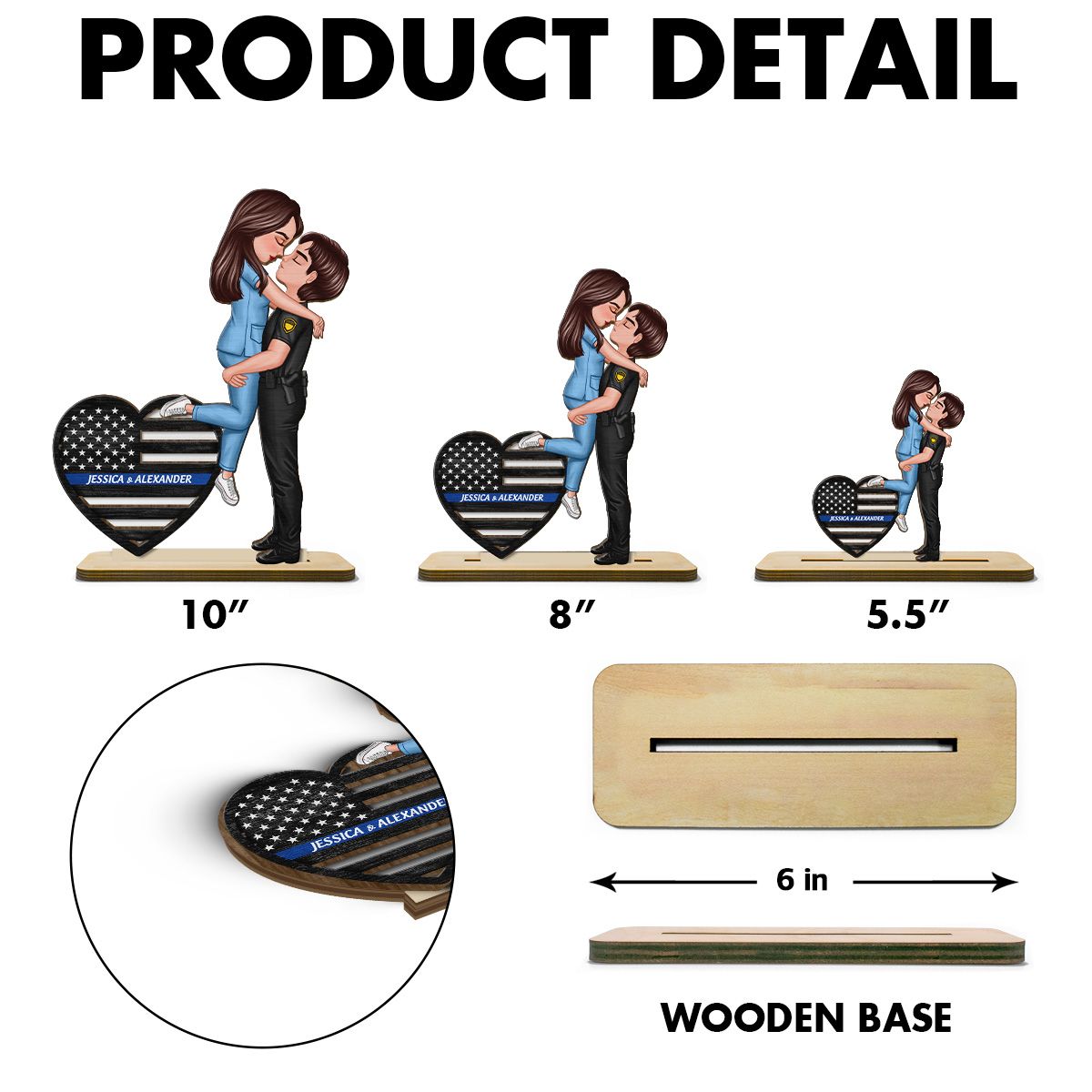 Hero Couple Hugging Kissing Keepsake Valentine's Day Gift by Occupation Personalized 2-Layer Standing Wooden Plaque