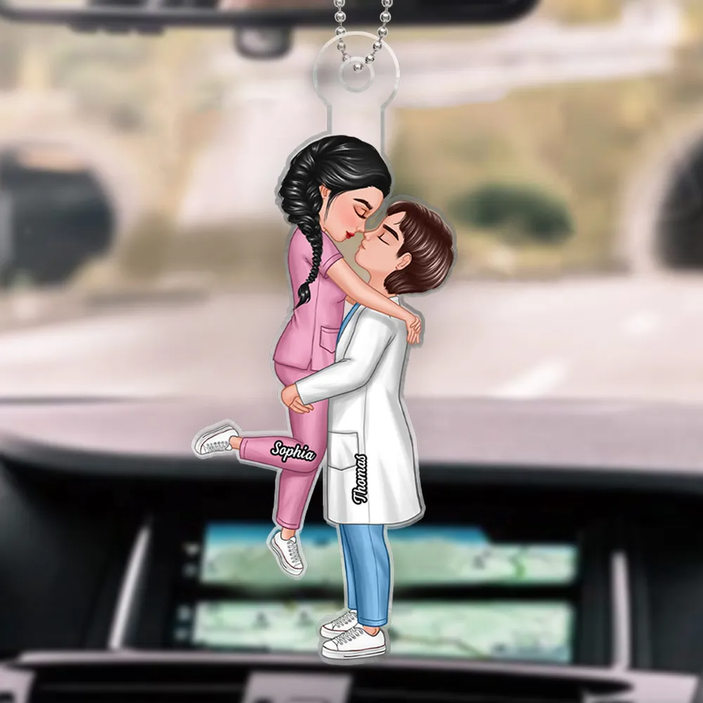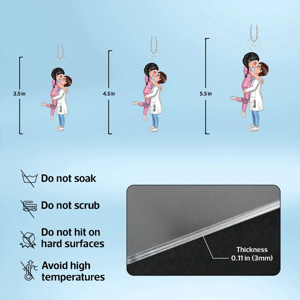 Hero Couple Hugging Kissing Personalized Acrylic Car Hanger Ornament, Anniversary Valentine's Day Gift For Him, For Her, For The Couple