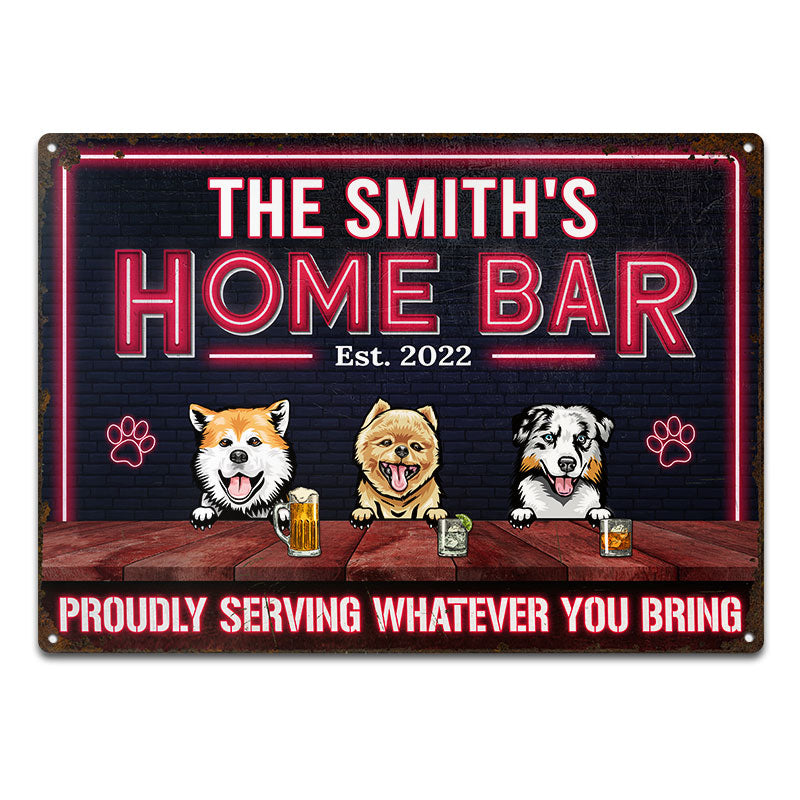 Home Bar Proudly Serving Whatever You Bring - Gift For Dog Lovers - Personalized Custom Classic Metal Signs