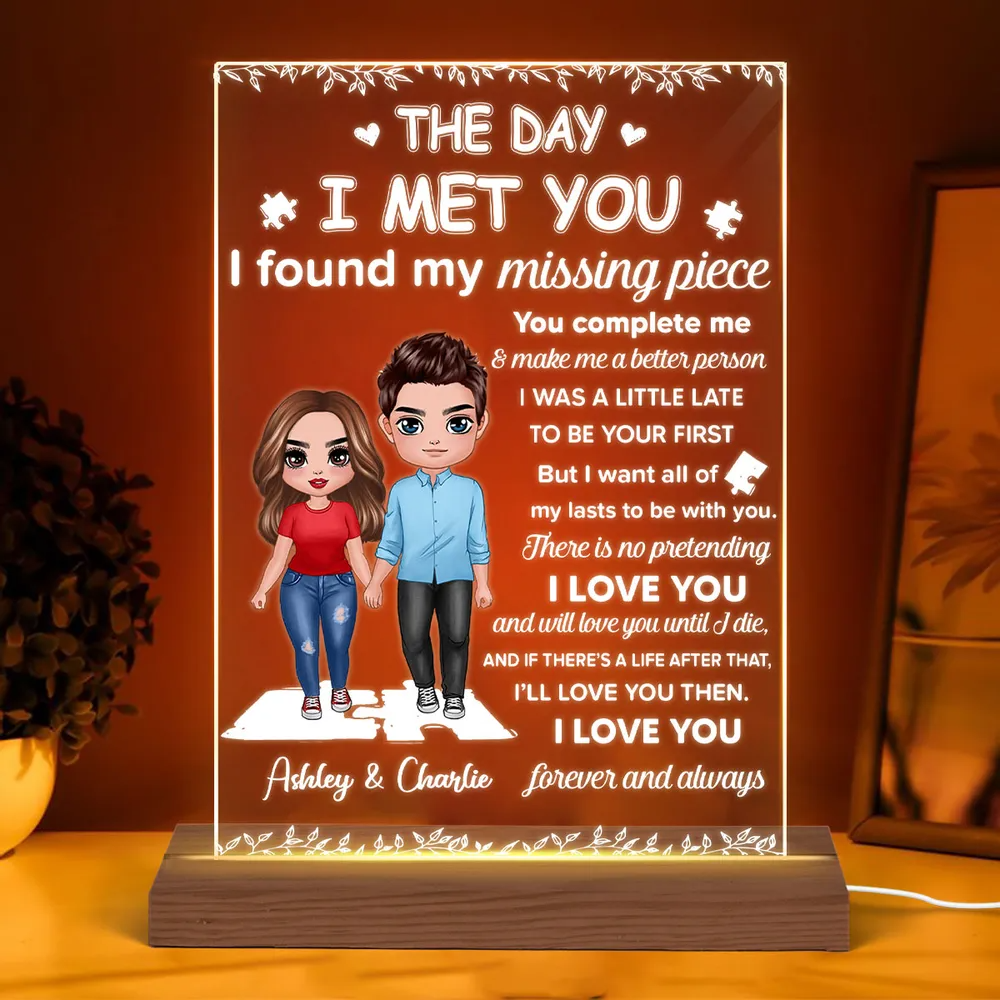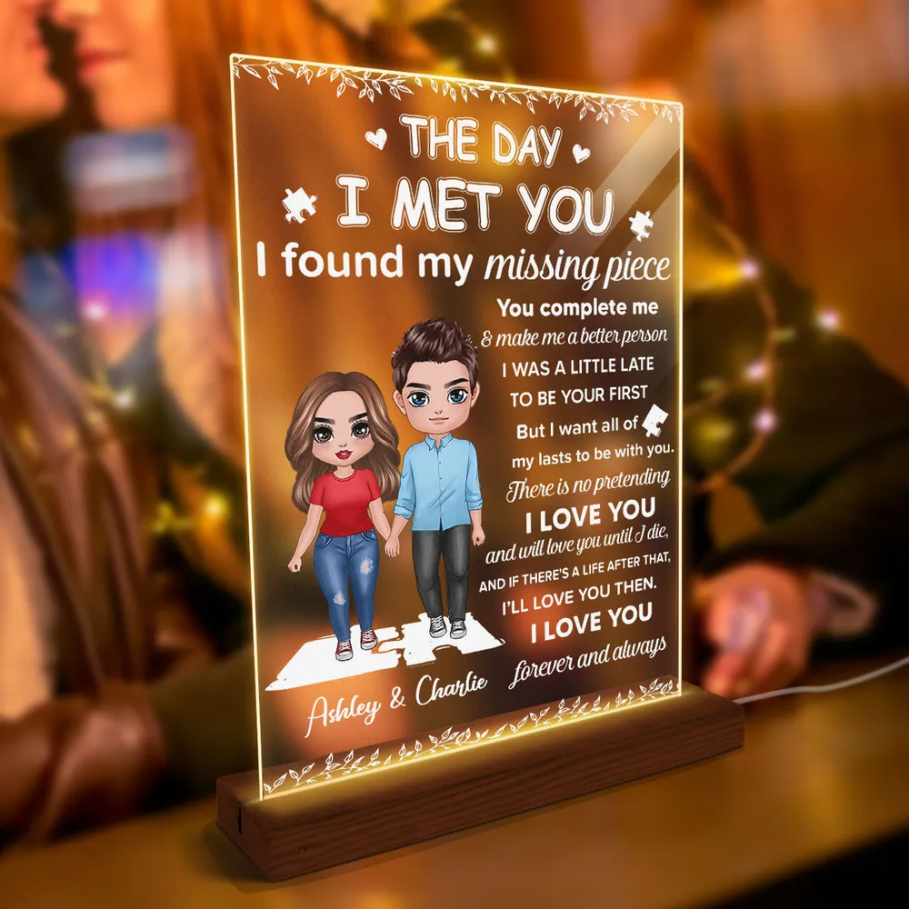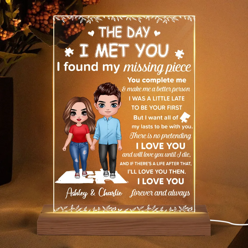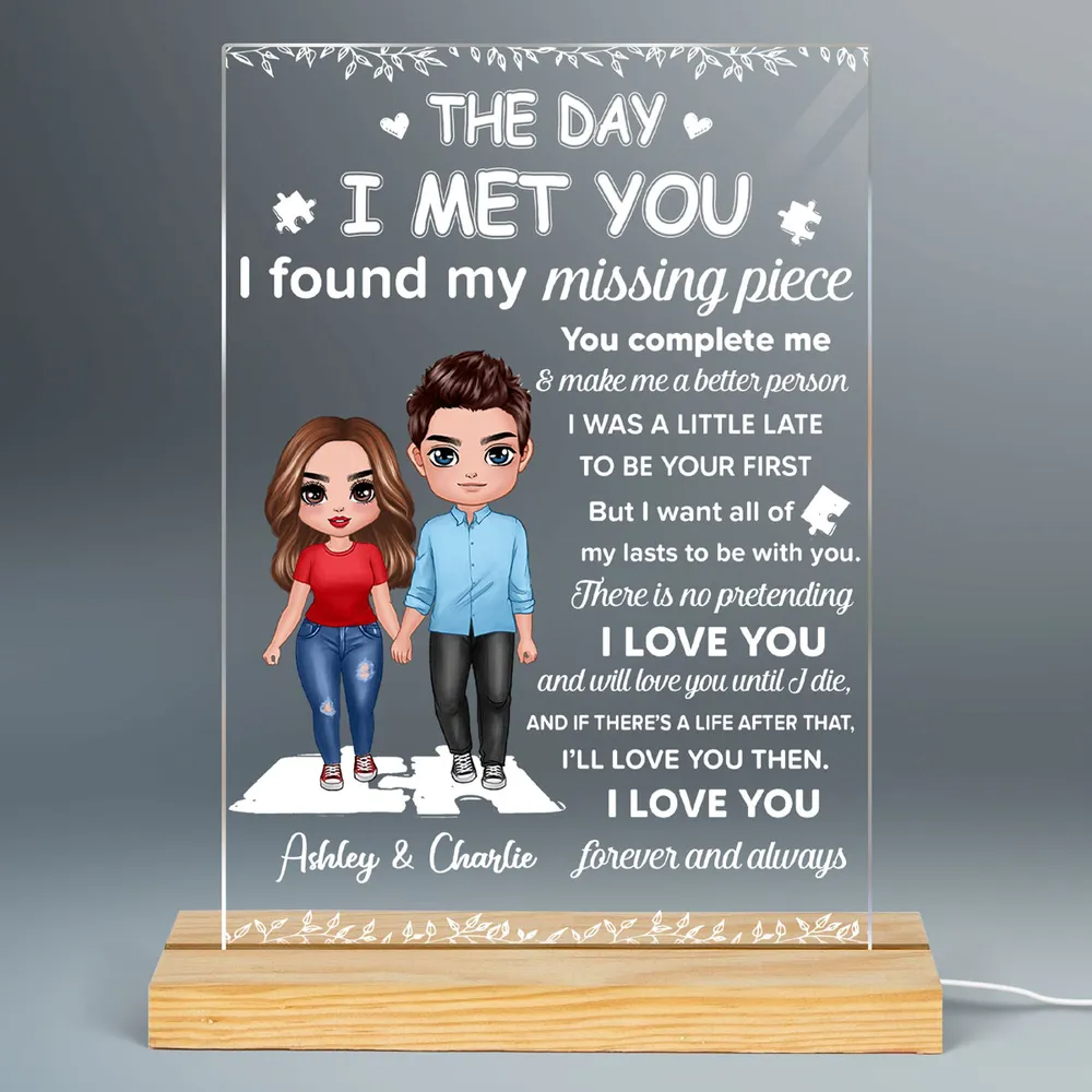I Found My Missing Piece Doll Couple Gift For Her Gift For Him Couple Personalized Acrylic Plaque With LED Night Light - Valentine‘s Day Gift - Anniversary Gift