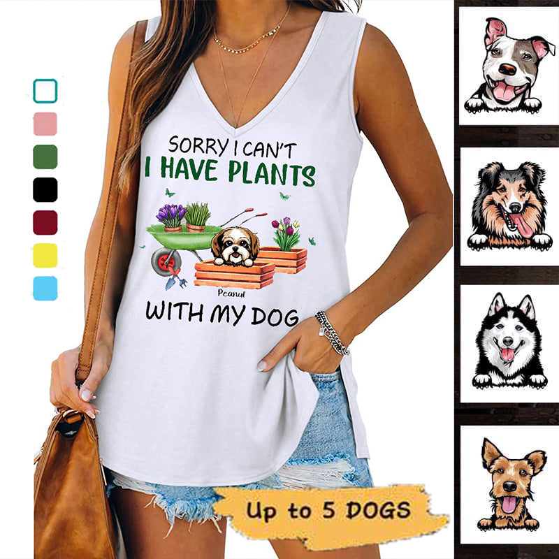 I Have Plants With My Dogs Gardening Personalized Women Tank Top V Neck Casual Flowy Sleeveless