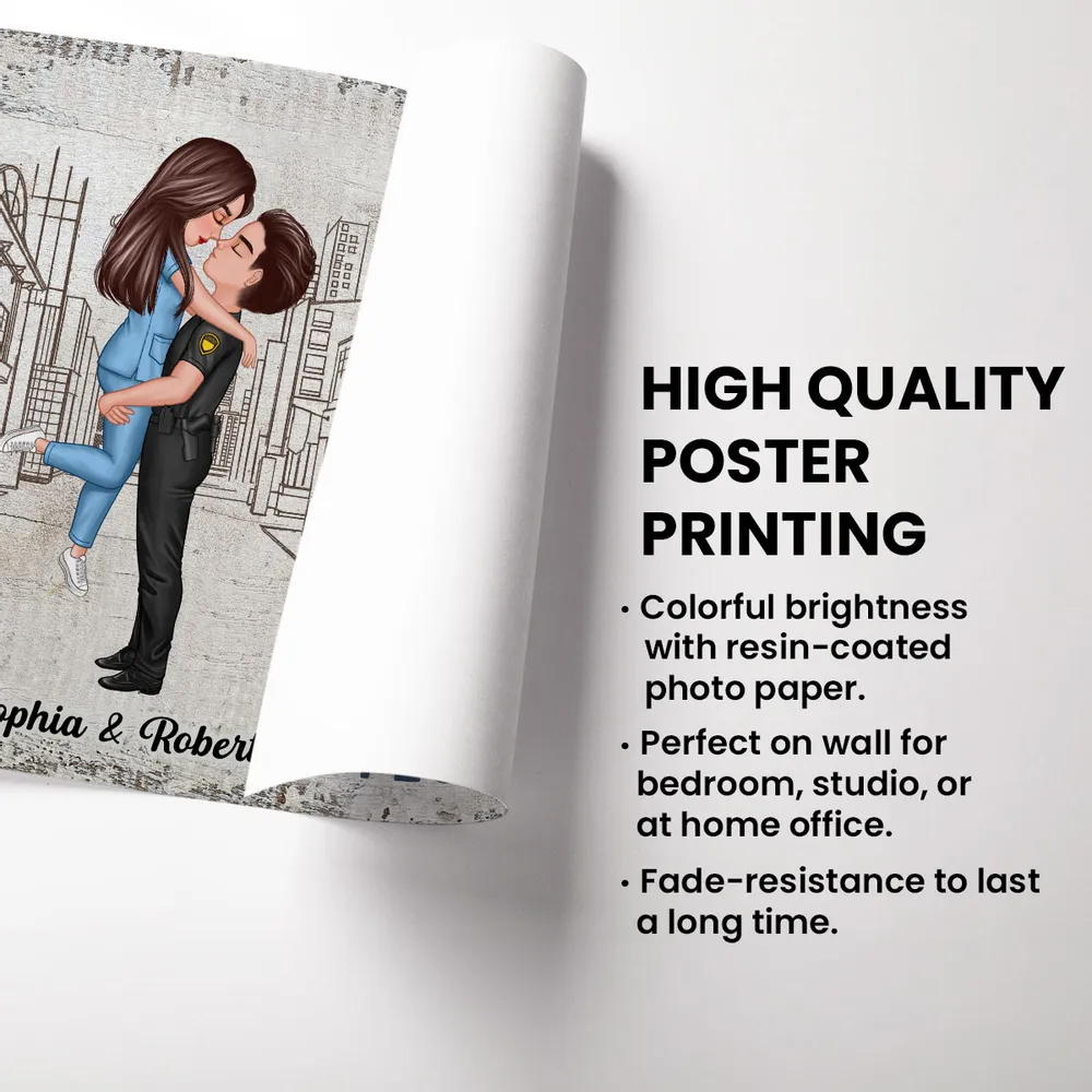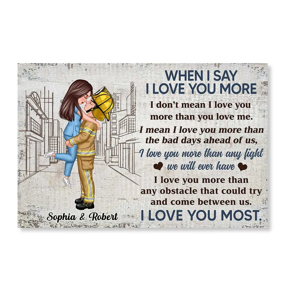I Love You More Couple Hugging Kissing Gifts by Occupation Gift For Her Gift For Him Firefighter, Nurse, Police Officer Personalized Poster