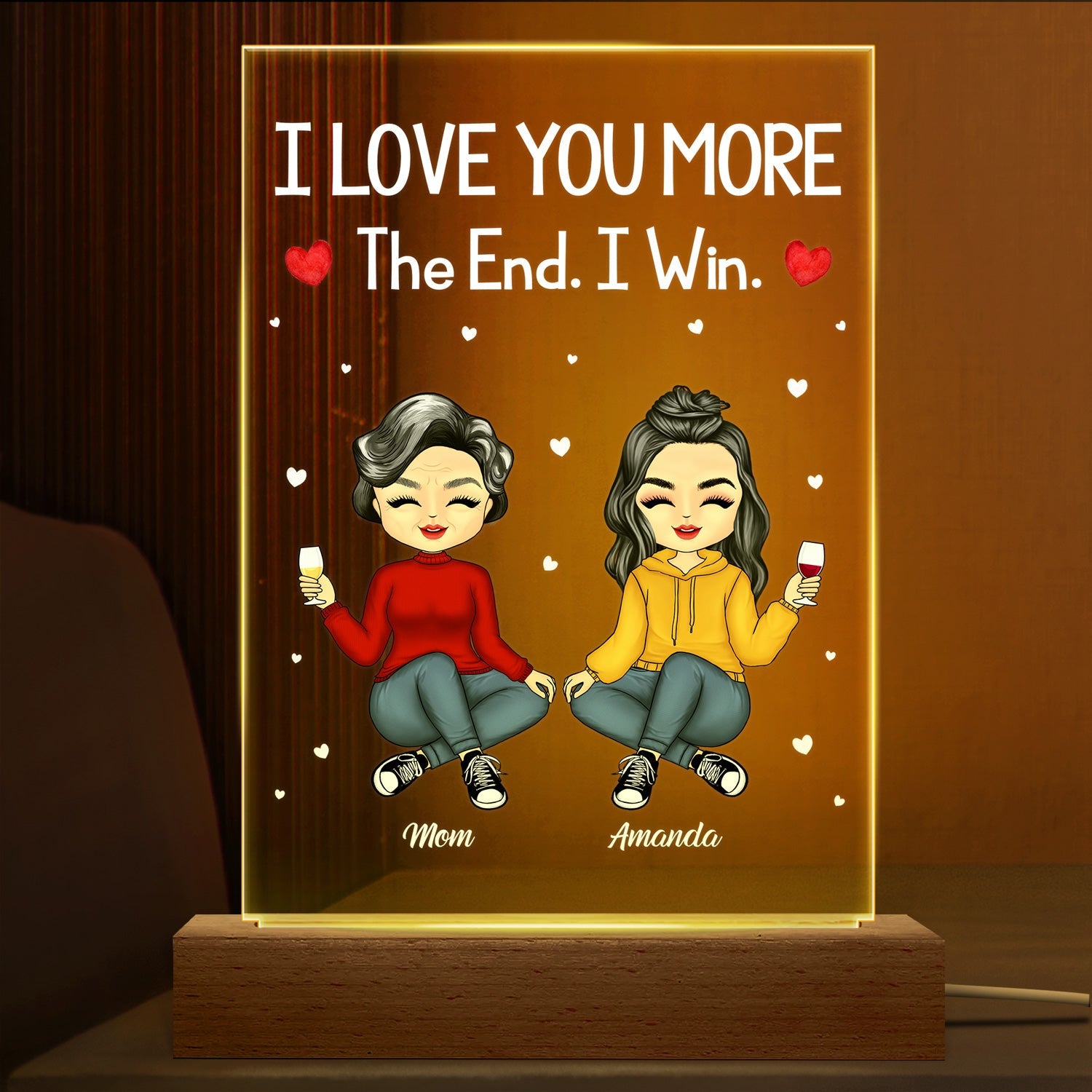 I Love You More The End I Win - Gift For Mom, Mother - Personalized Custom 3D Led Light Wooden Base