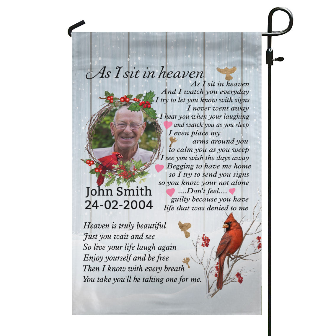 I Watch You Everyday Customized Memorial Garden Flags For Family With Your Own Photo As I Sit in Heaven