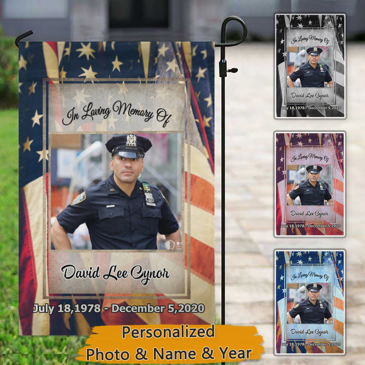 In Loving Memory – Patriotic Flag, Personalized Photo Memorial Garden Flag