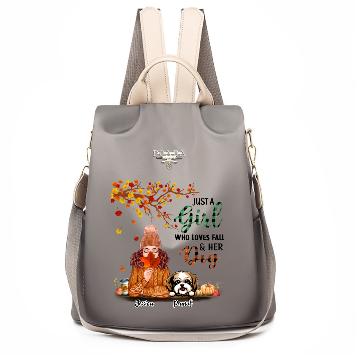 Just A Girl Loves Fall Season And Peeking Dogs Personalized Backpack