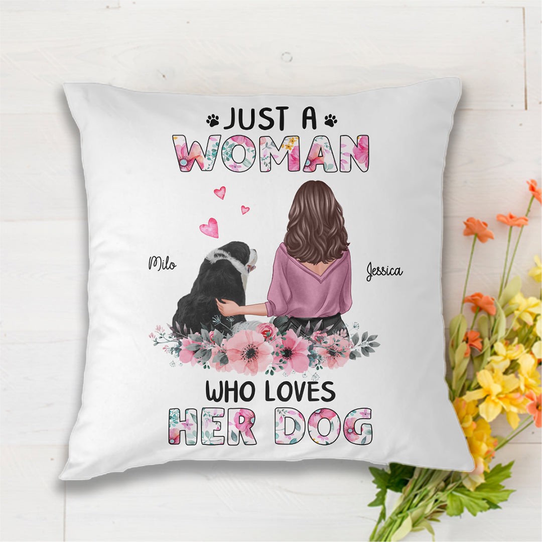 Just A Woman Who Loves Her Dog Floral Personalized Pillow