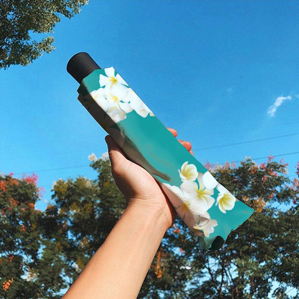 Lagoon Blue Tropical Plumeria Christmas Umbrella No.C5T5L5
