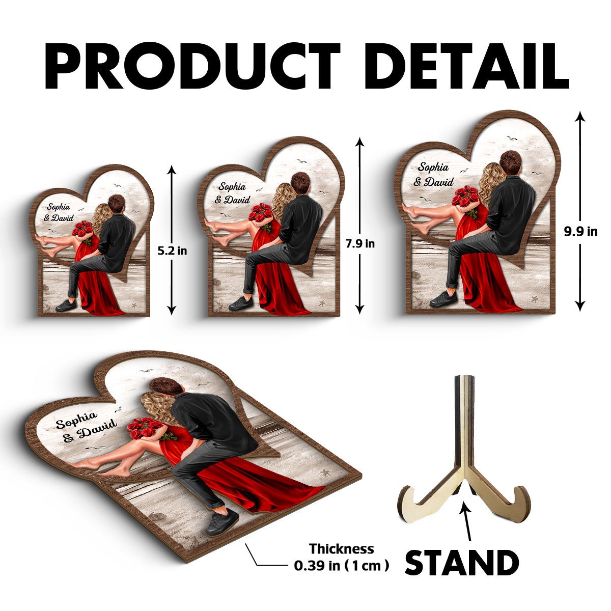 Landscape Heart Couple Sitting Back View 2-Layer Wooden Plaque, Heartfelt 2025 Personalized Couple Gift For Valentine's Day, For Her, For Him