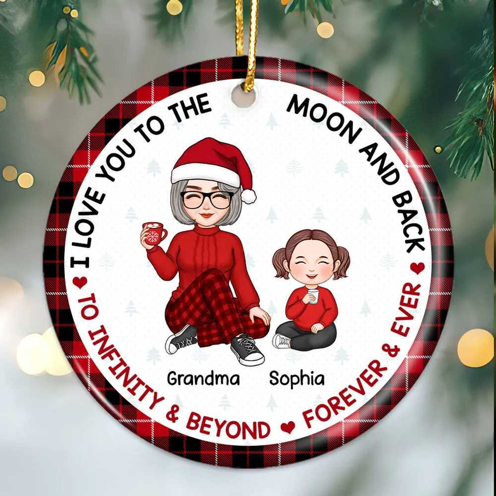 Love To The Moon Plaid Cute Grandma & Grandkid Sitting Personalized Circle Ornament