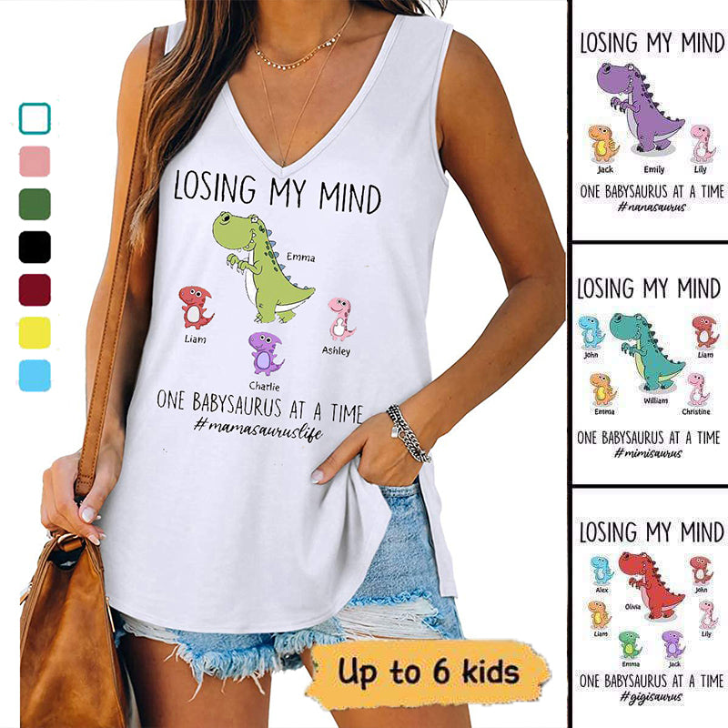 Mamasaurus Losing My Mind Personalized Women Tank Top V Neck Sleeveless