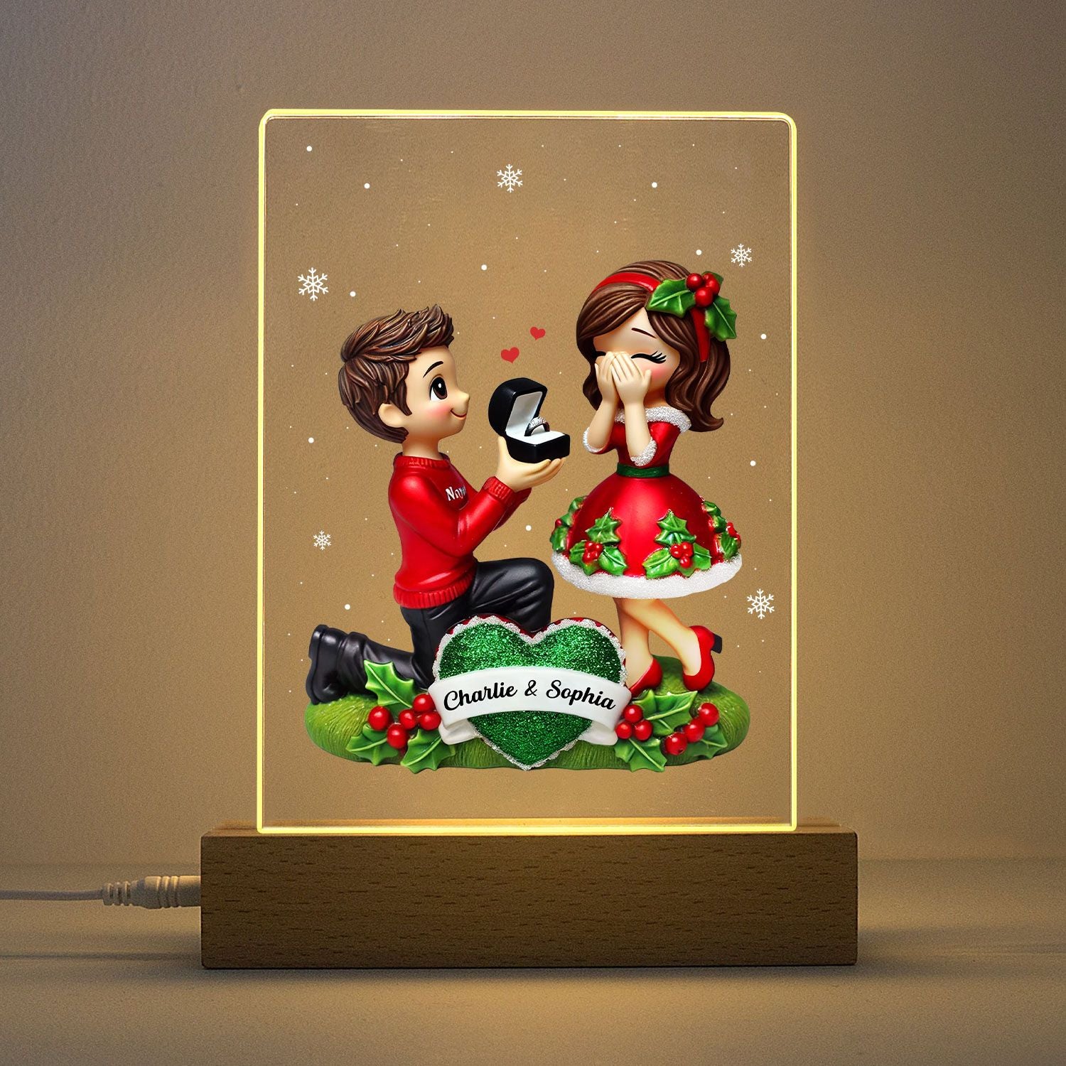 Marriage Proposal LED Night Light, Personalized Newly Engaged Couple Gift, She Said Yes!