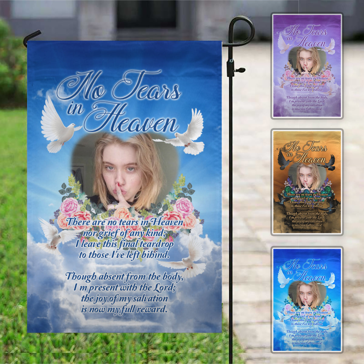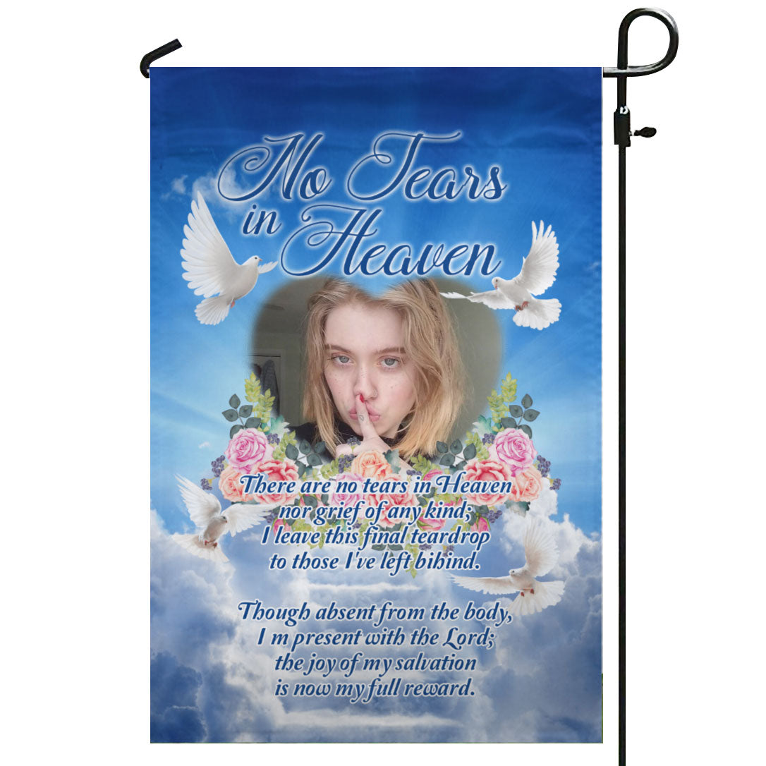 No Tears In Heaven Personalized Photo Memorial Garden & House Flag