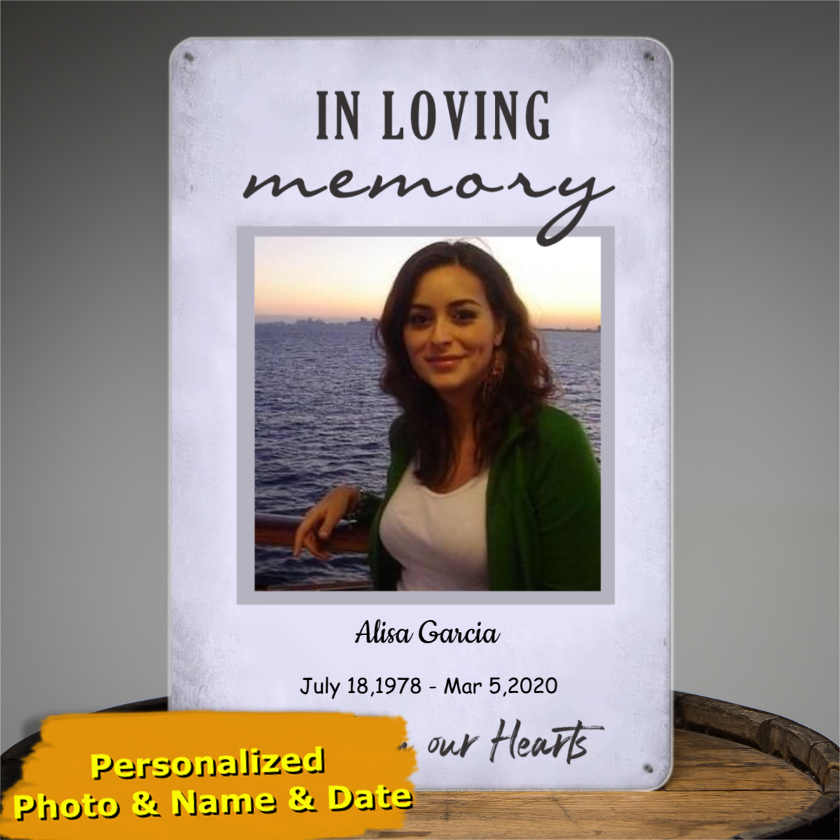 Memorial Tin Signs, In Loving Memory of, Cemetery Decoration, Forever in our hearts, RIP, Funeral Service Tin Signs No.WSQ9MV