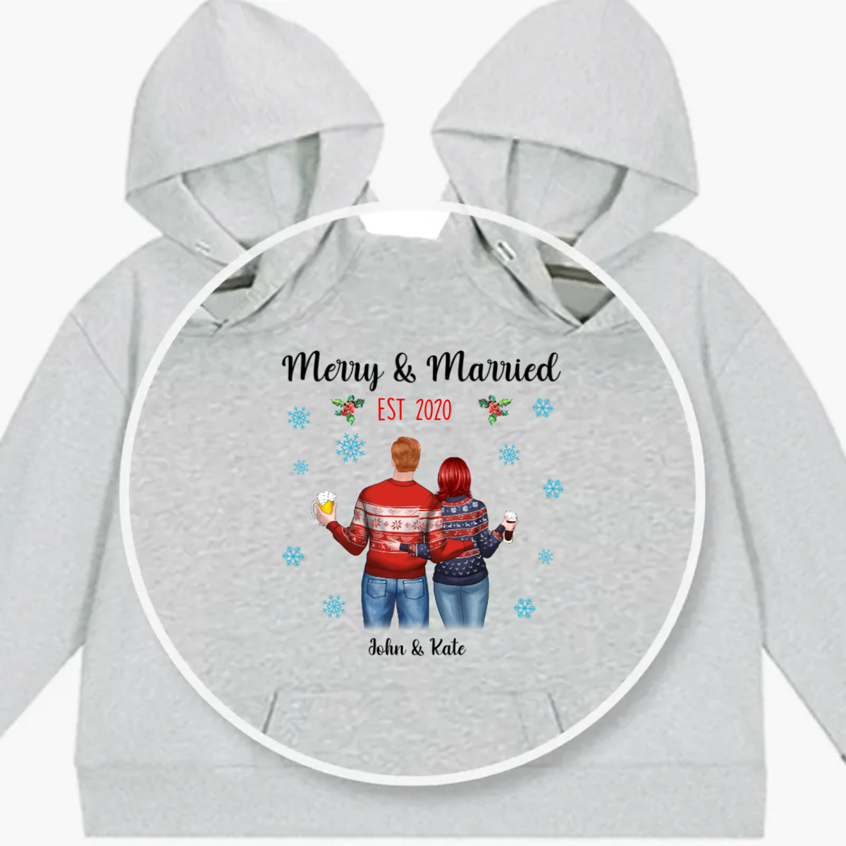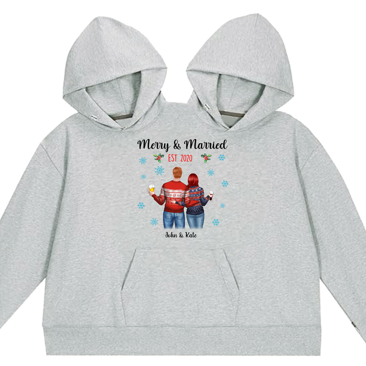 Merry And Married Couple Standing Christmas Personalized Couple One-Piece Hoodie Sweatshirt
