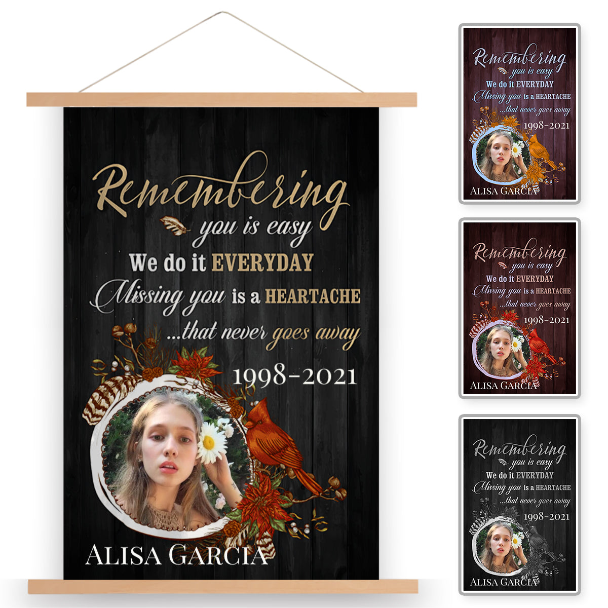 Missing You Is A Heartache Memorial Photo Personalized Scroll Painting With Wooden Poster Hanger