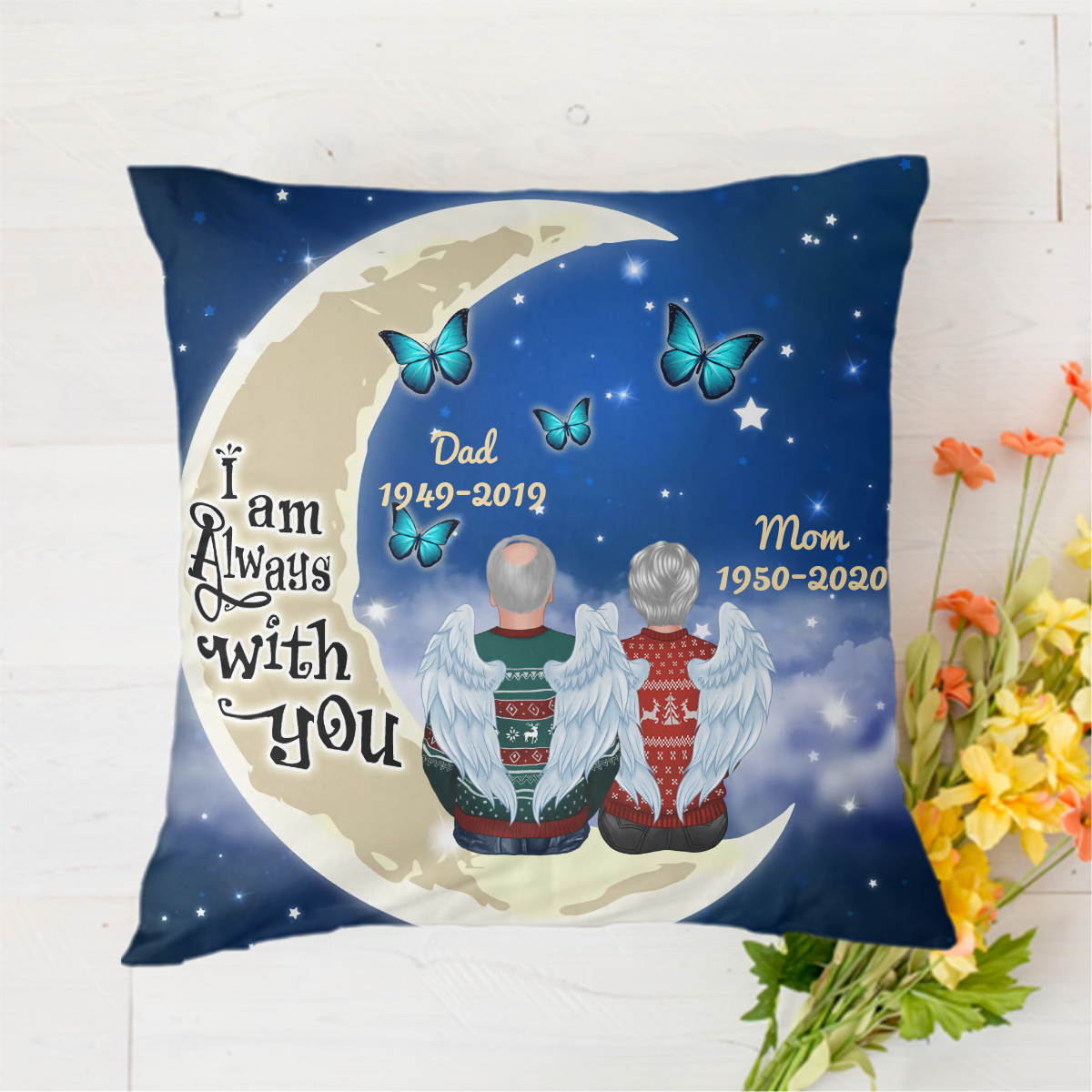 Mom Dad On Moon Butterflies Memorial Polyester Linen Pillow - Always With You