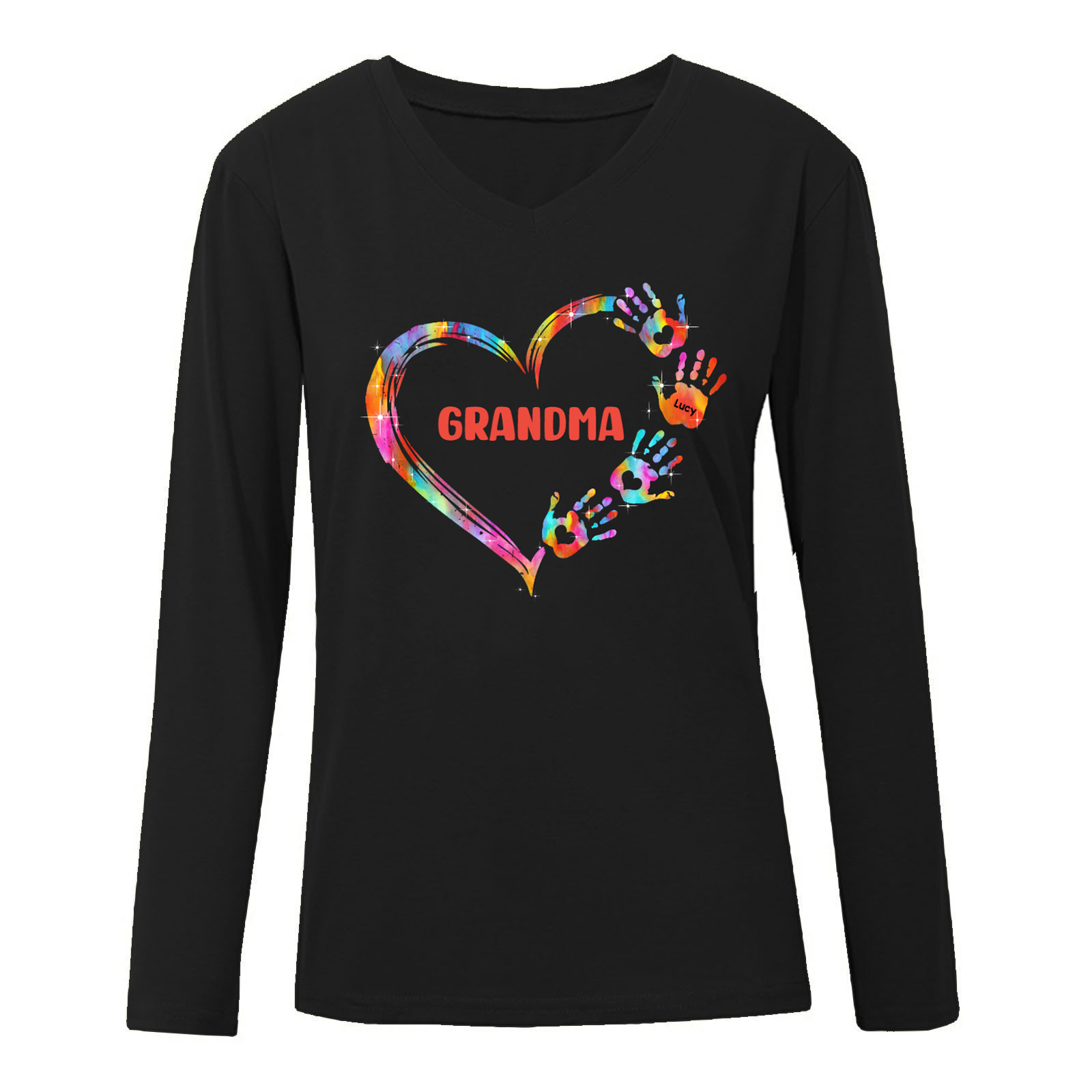 Mom Grandma Colorful Heart Hand Print Personalized Long Sleeve Shirt