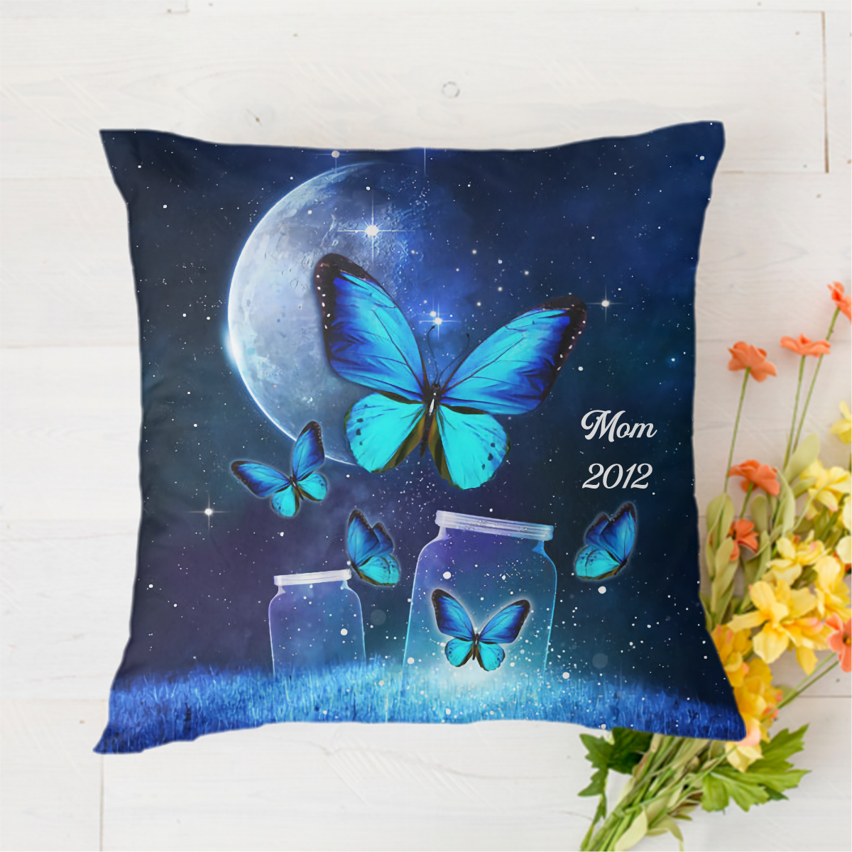 Moon Butterflies Jar Memorial Personalized Polyester Linen Pillow
