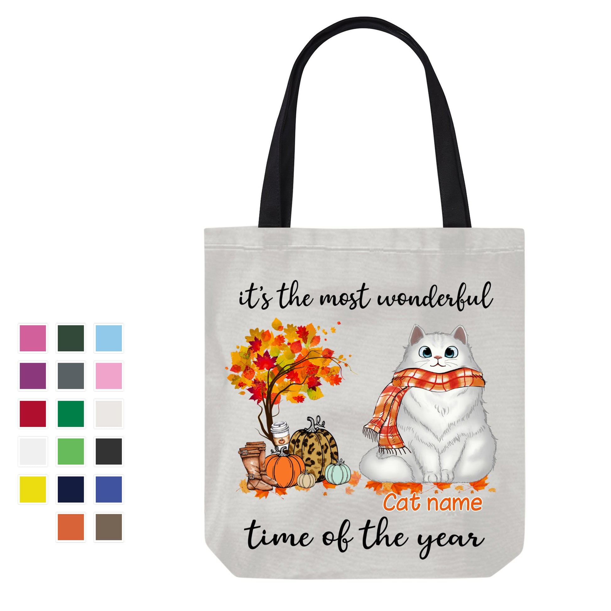 Most Wonderful Time Autumn Fluffy Cat Personalized Canvas Bag