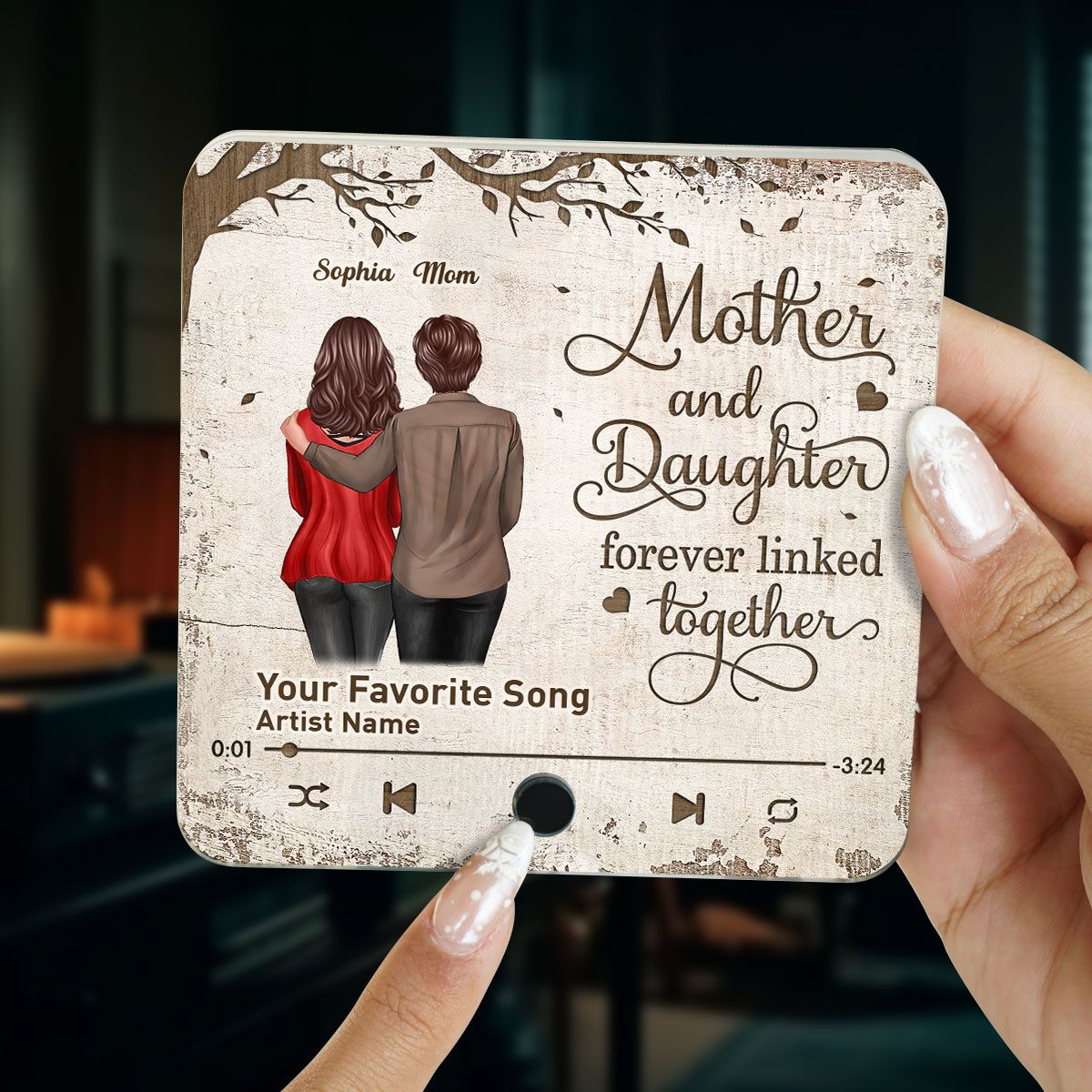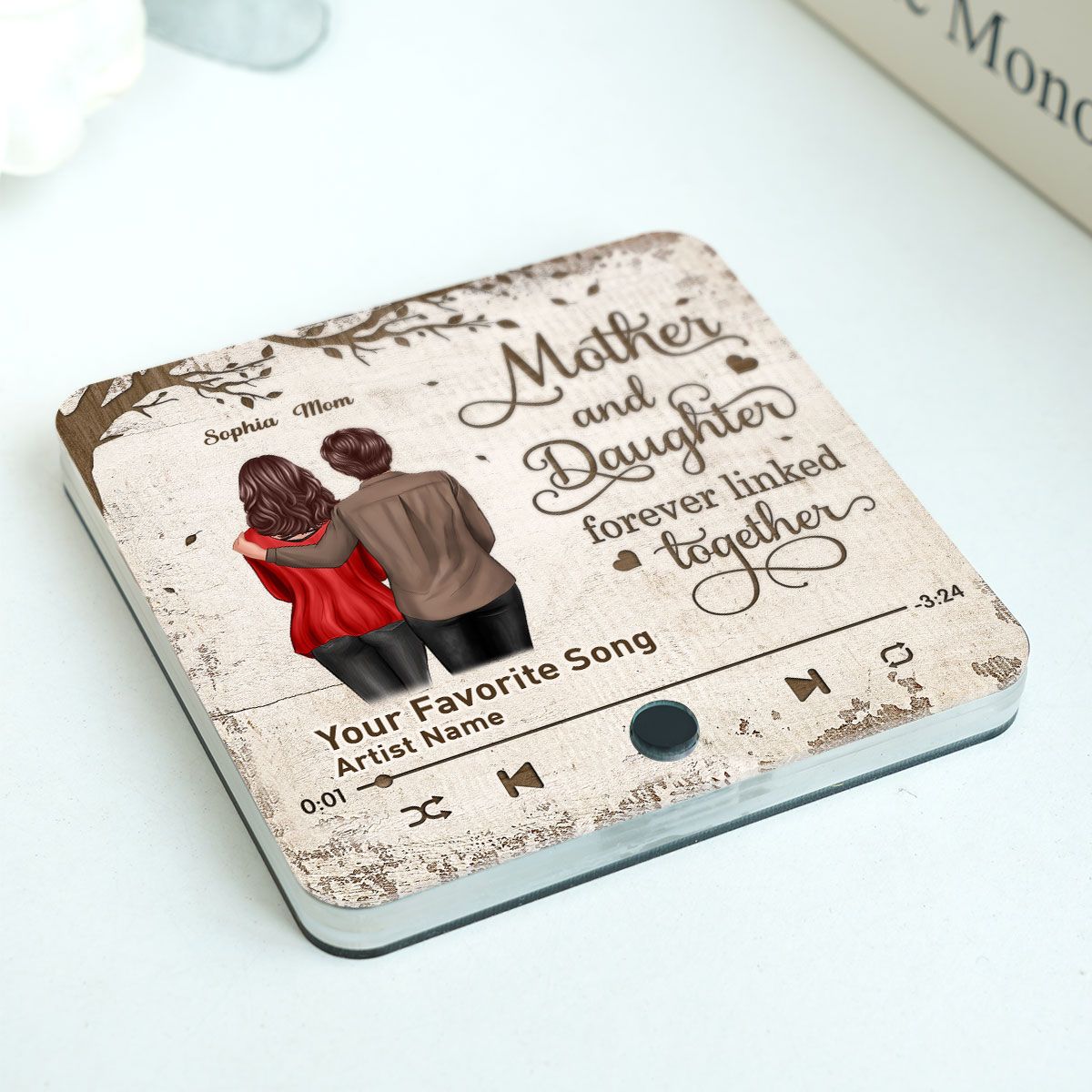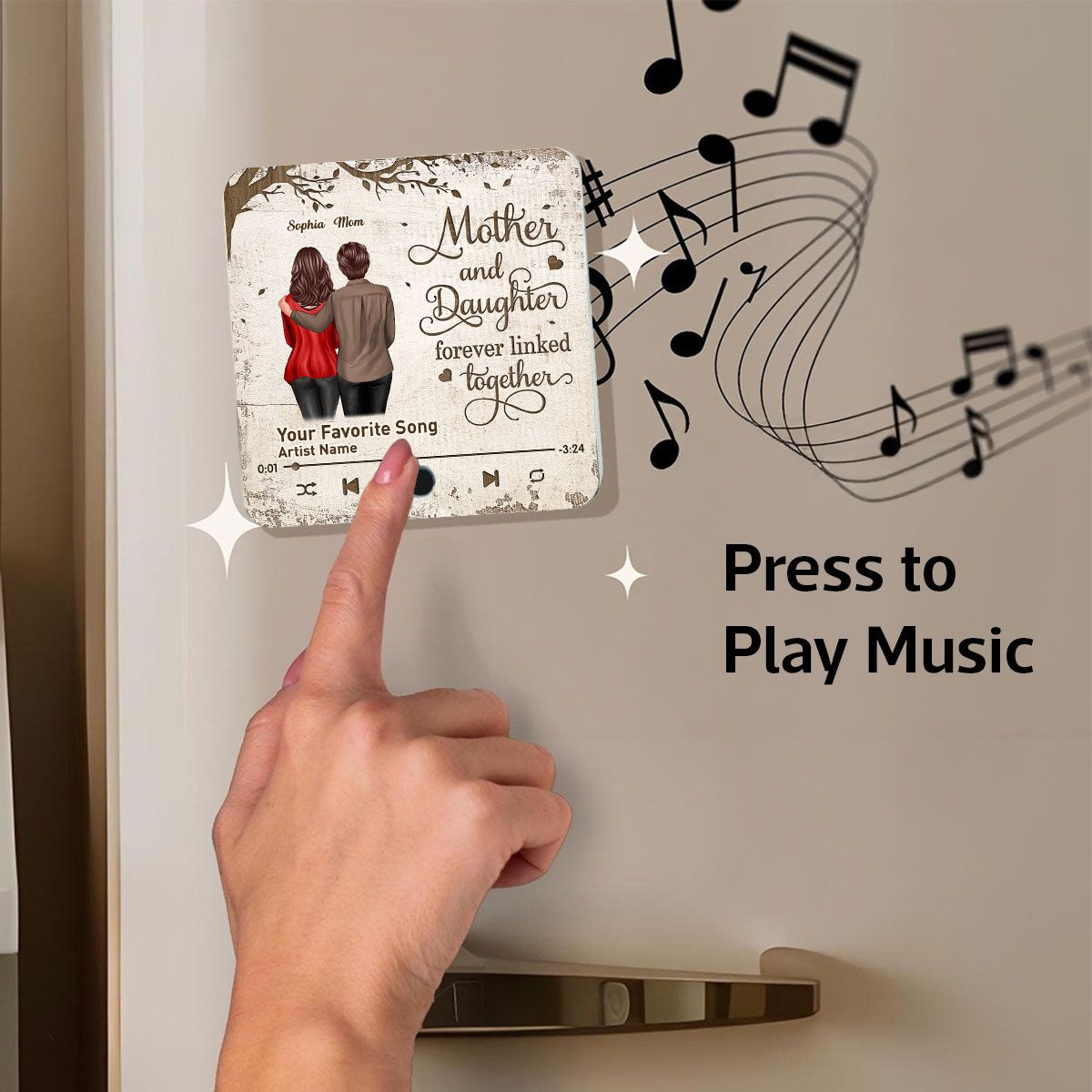 Mother & Daughter Son Under Tree Forever Linked Together Personalized Music Fridge Magnet, Heartfelt Gift For Mom