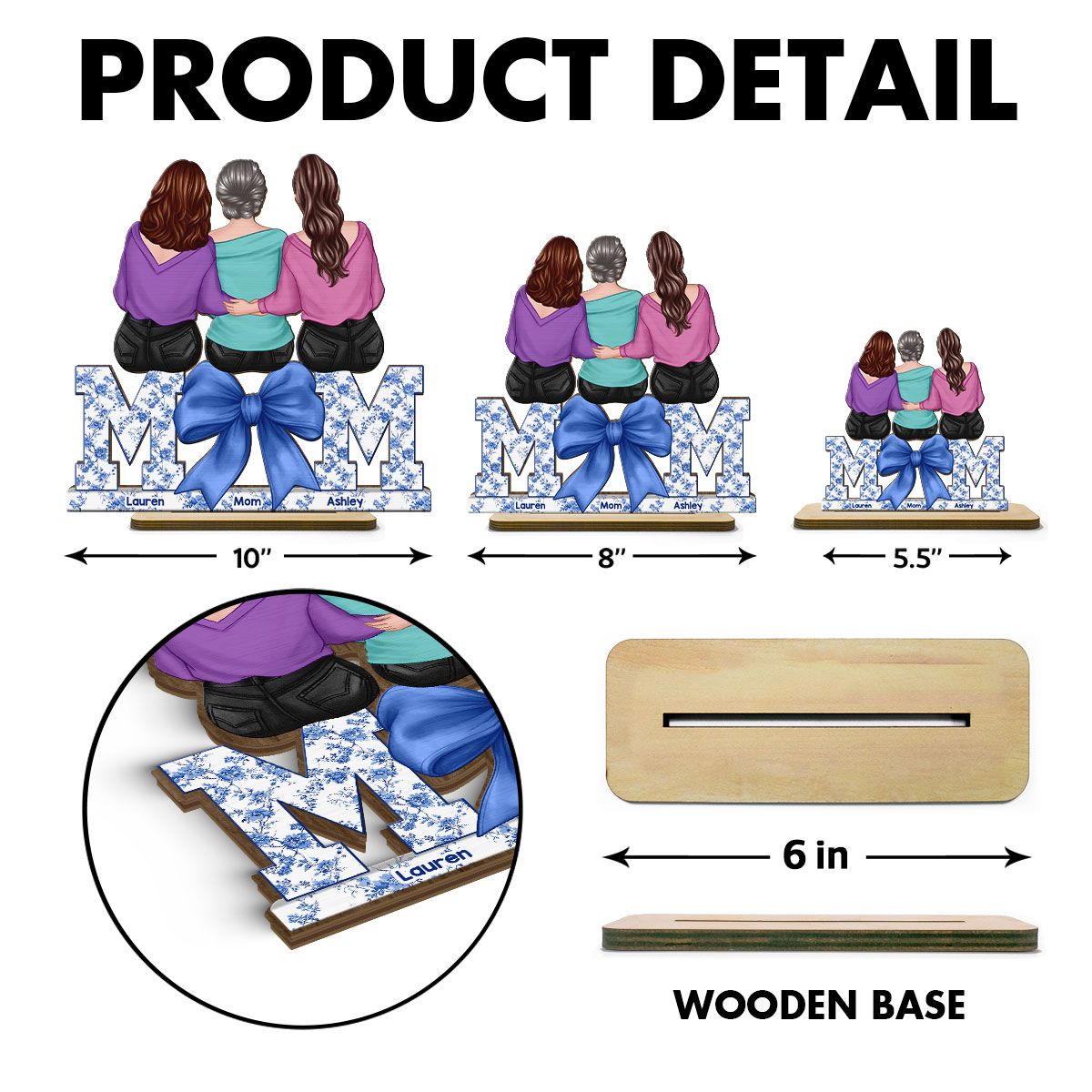 Mother Daughters Blue Floral Chinoiserie Personalized Standing Wooden Plaquer, Mother's Day Gift