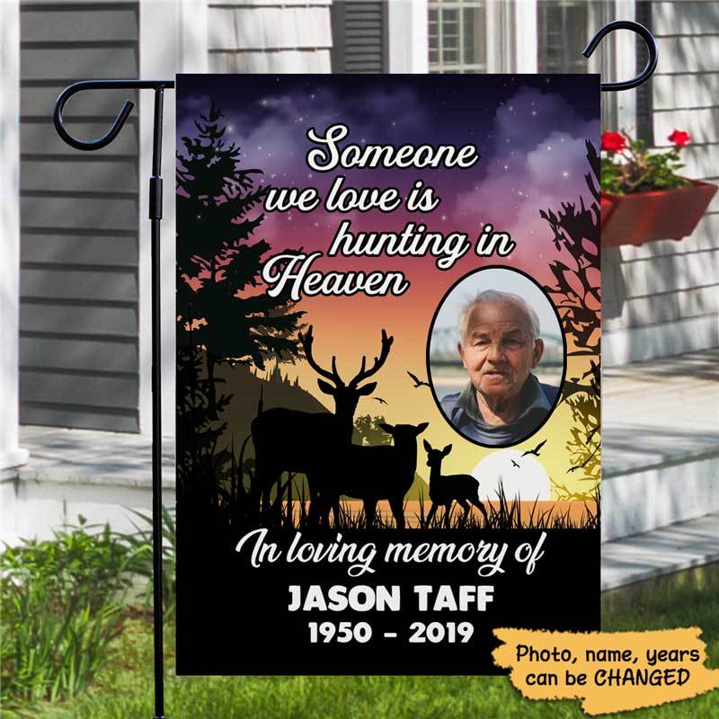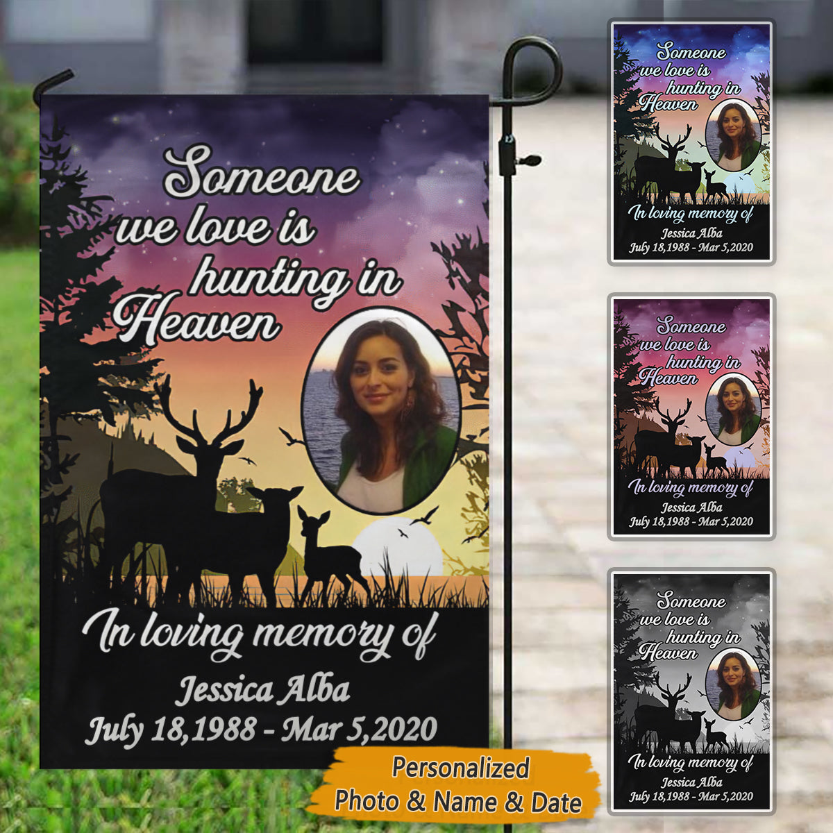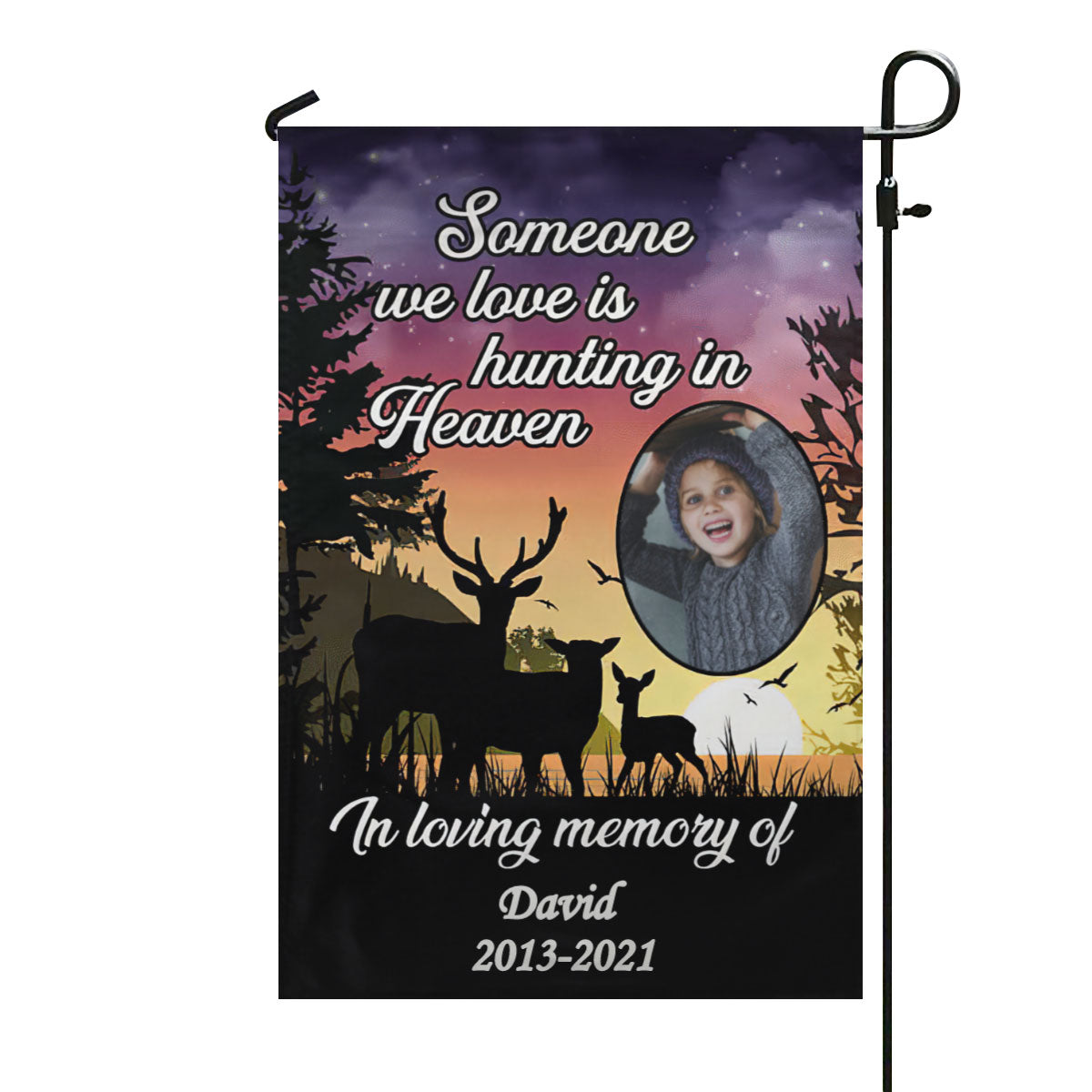 Someone We Love is Hunting in Heaven Personalized In Loving Memory Memorial Garden Flag