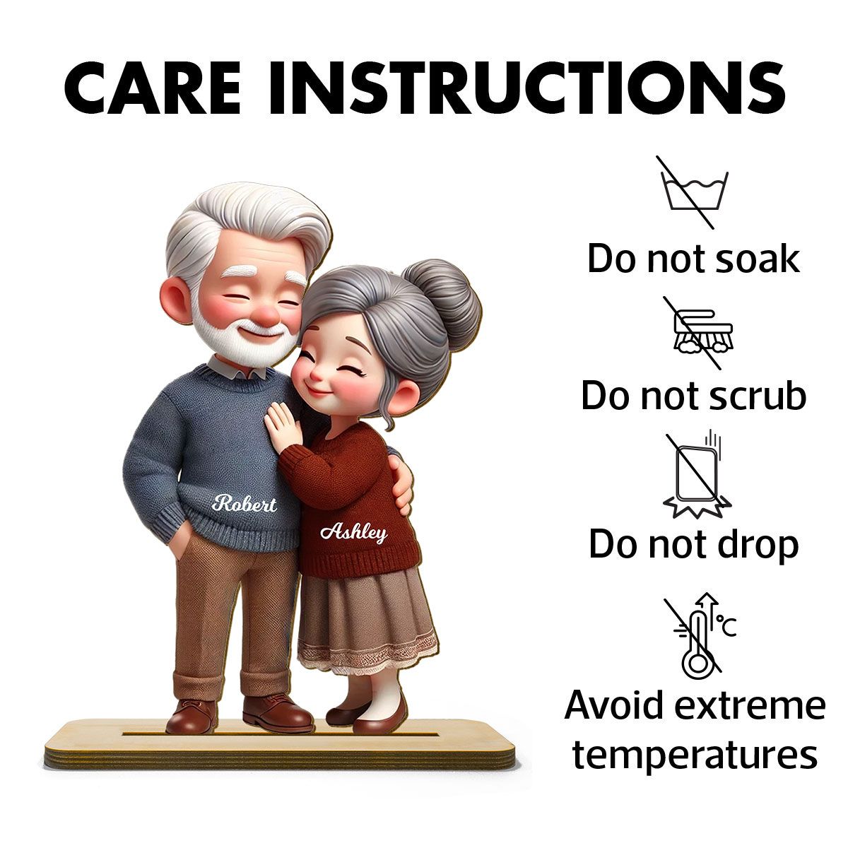 Old Couple Embracing Personalized Standing Wooden Plaque, Gift for him, Gift for her